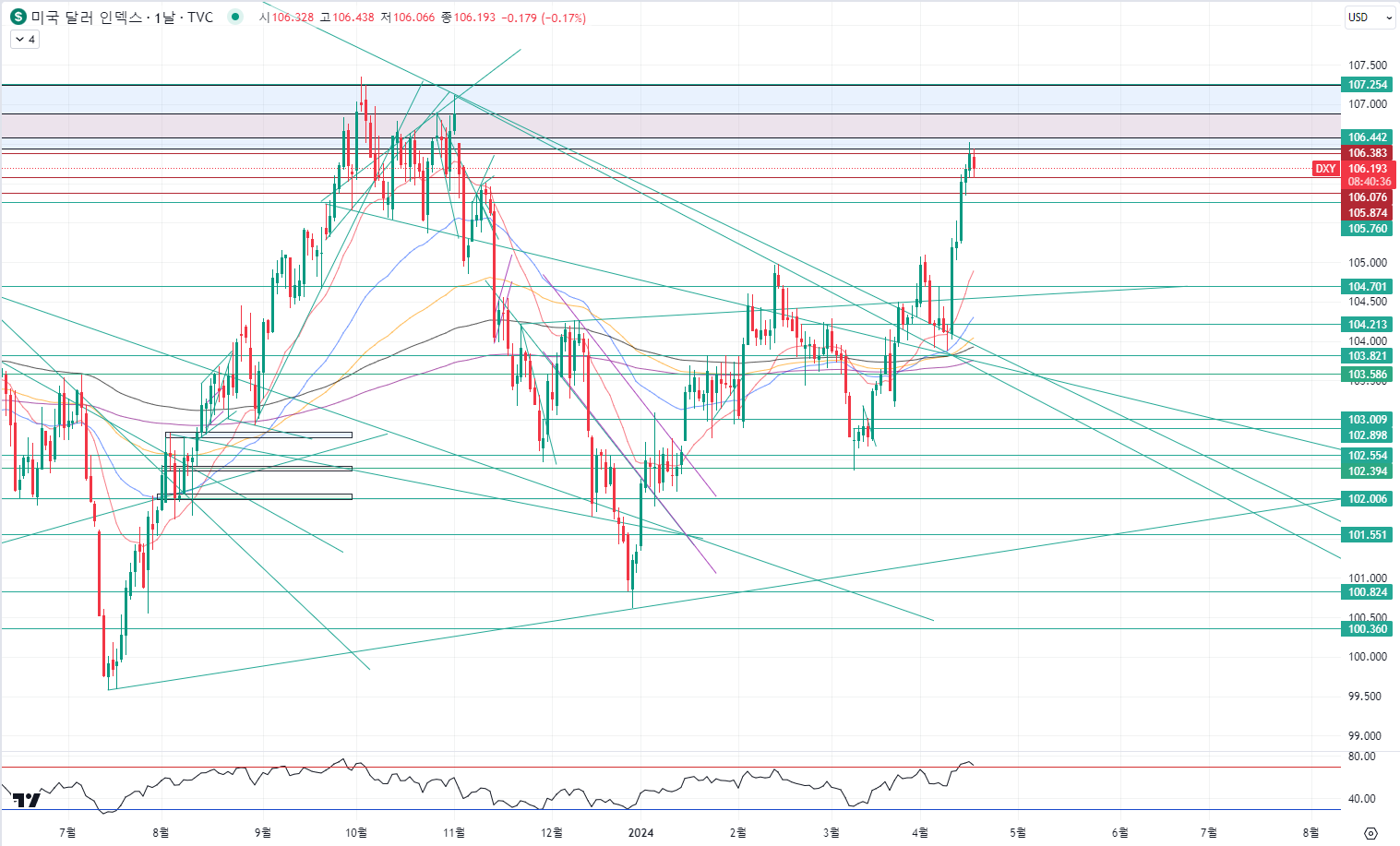 달라는 저항 구간에 도달했습니다.