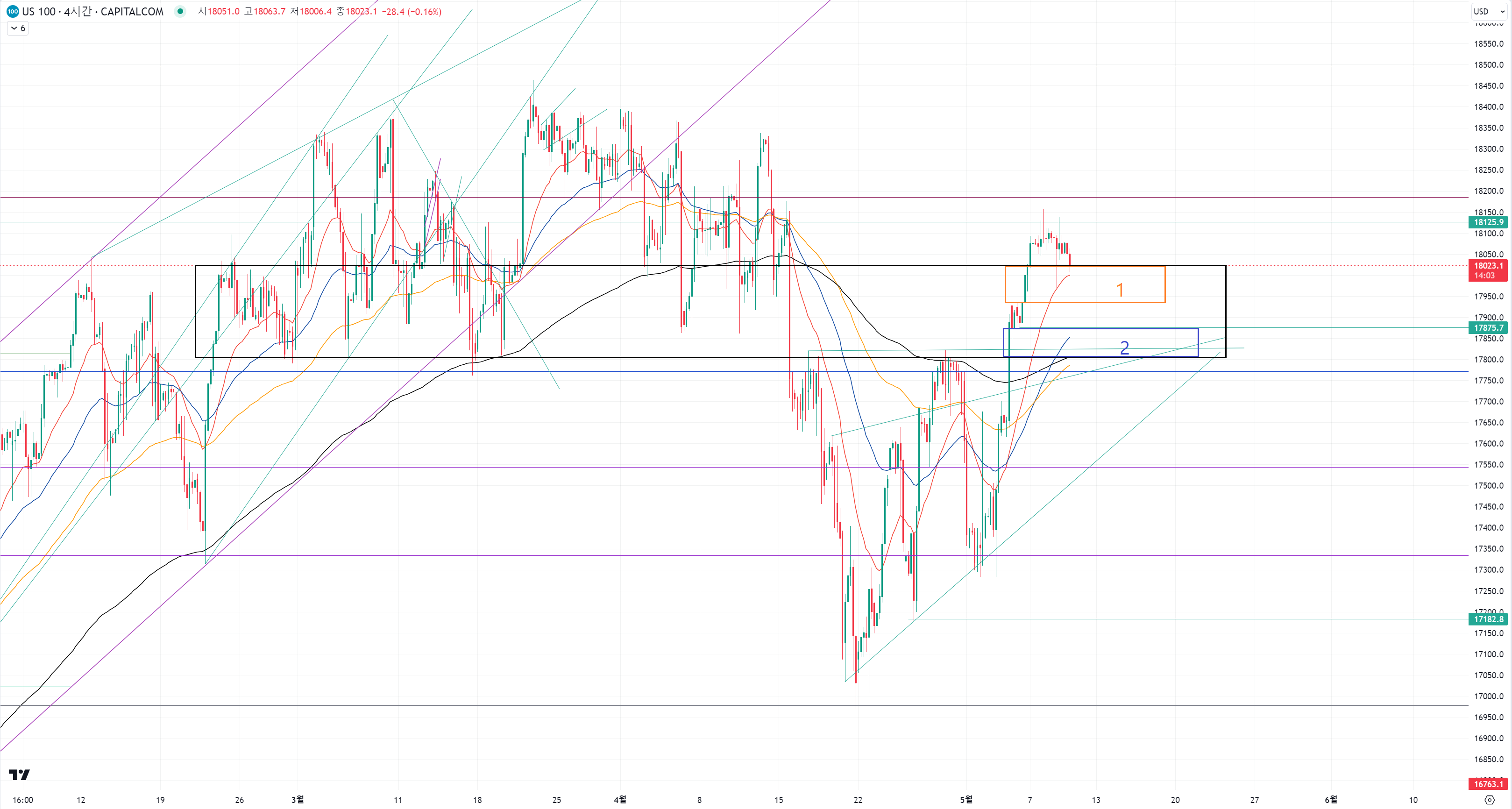 나스닥은 검은색 구간이 빈공간은 아니지만 매물대가 약한 구간입니다.