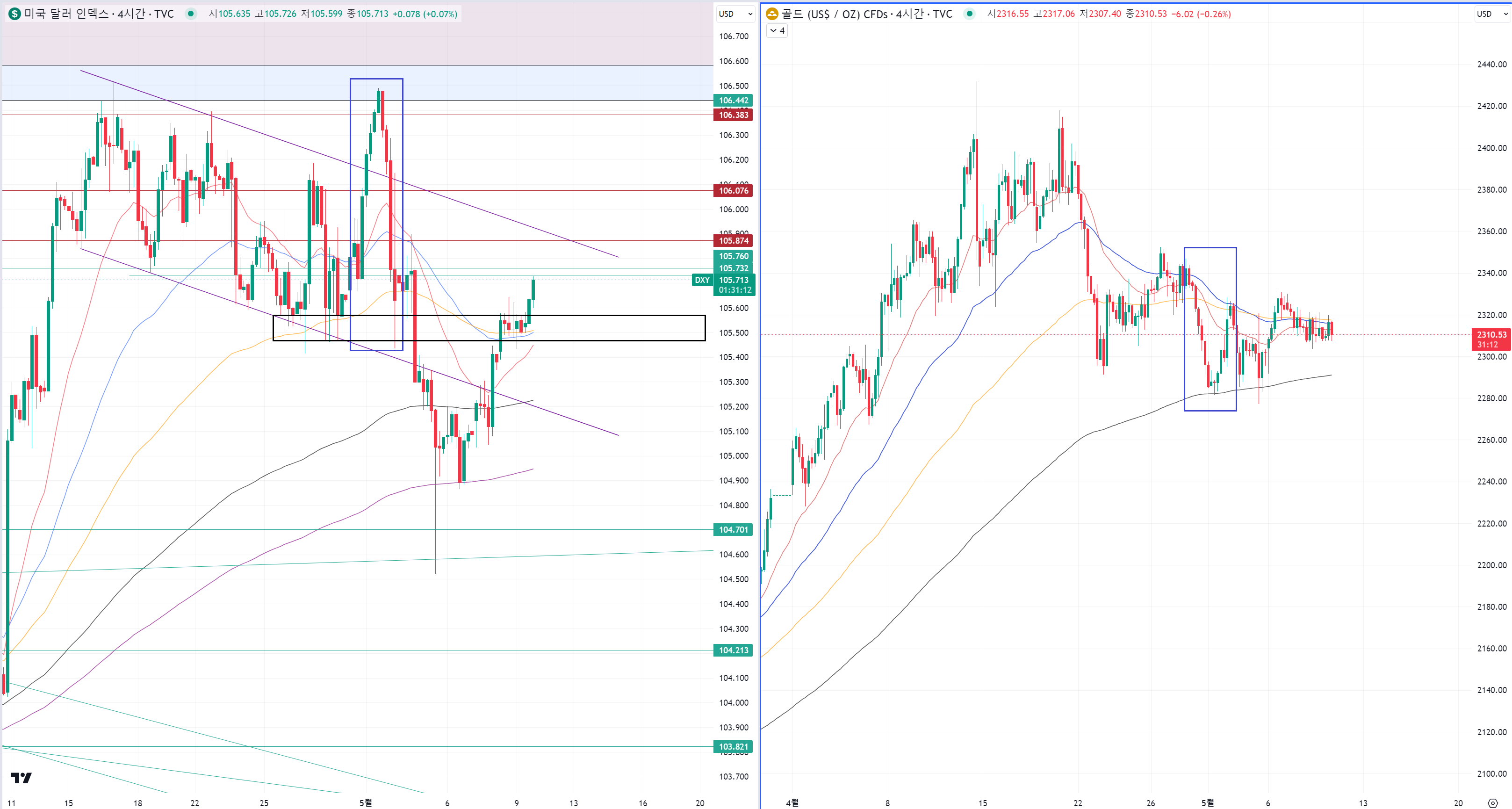 이 부분은 골드와 채권금리 차트에서도 각각 매수세 매도세를 확인해서 맞춰봐야해요.