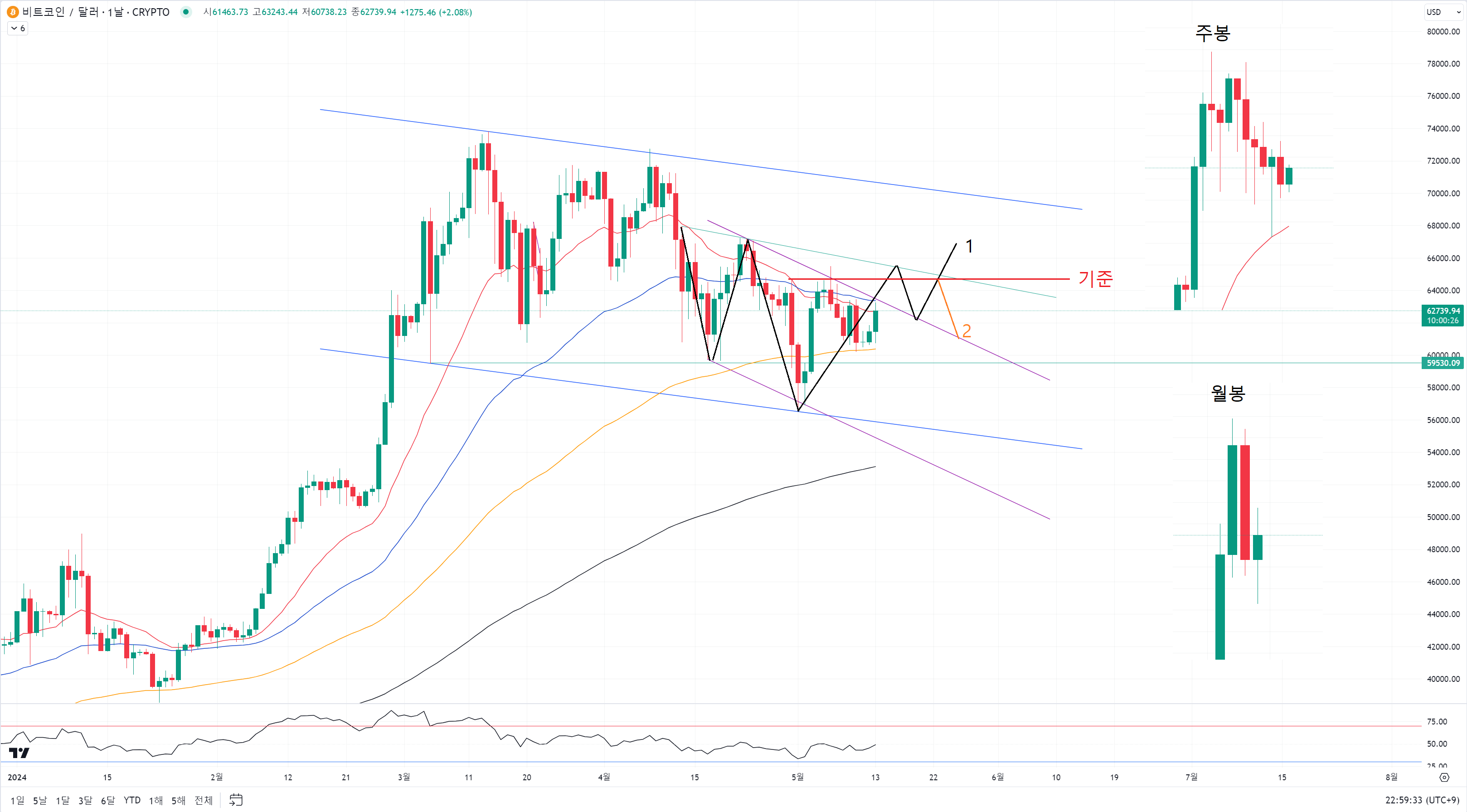 | 비트코인 월봉과 선물 차트 특징 활용. 달라의 움직임. (0) | 2024.05.05 |