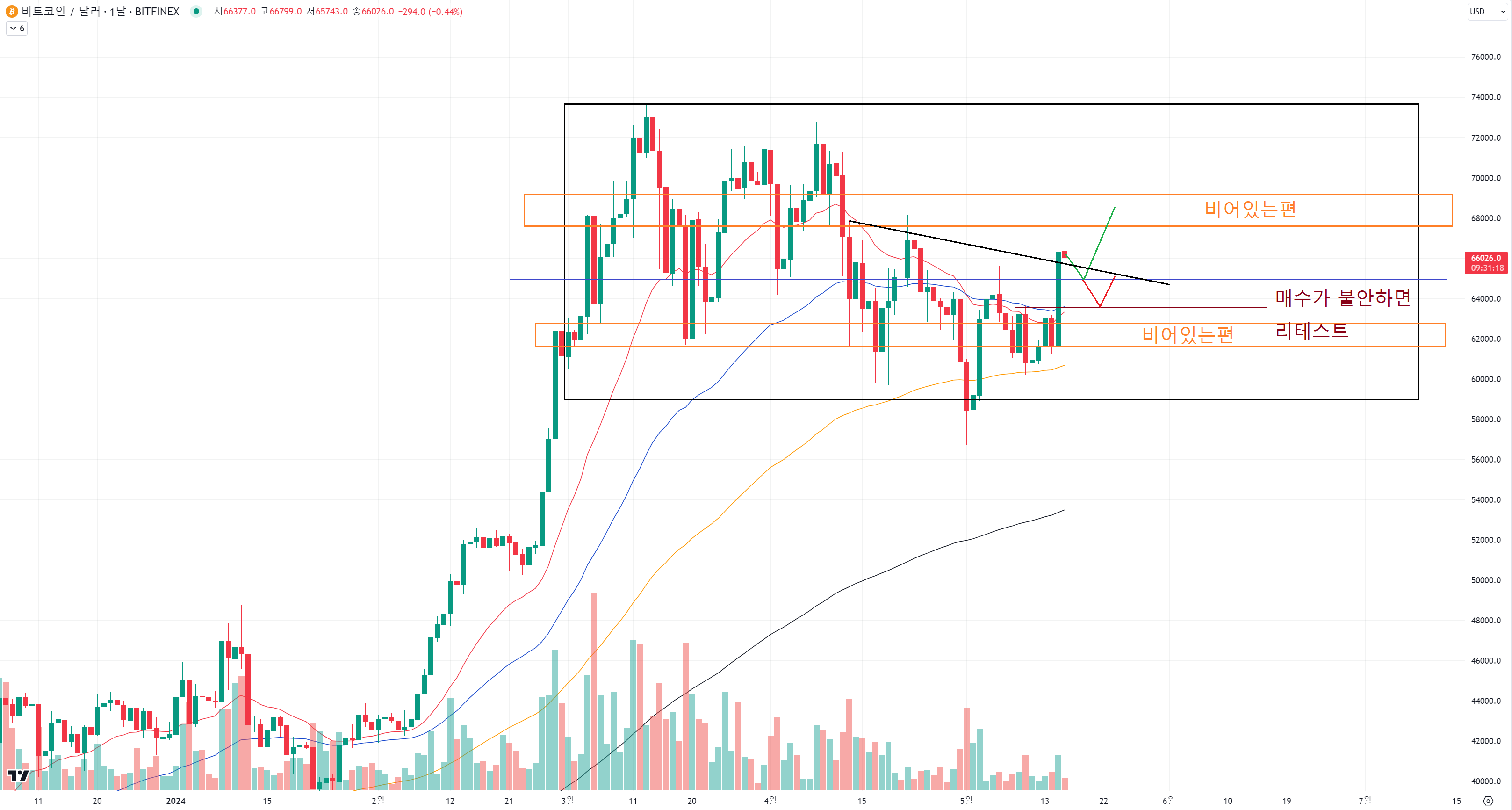 그런데 67000을 중심으로 하는 꼬리들이 뭉쳐있는 명치는 조심해야합니다.(666....)