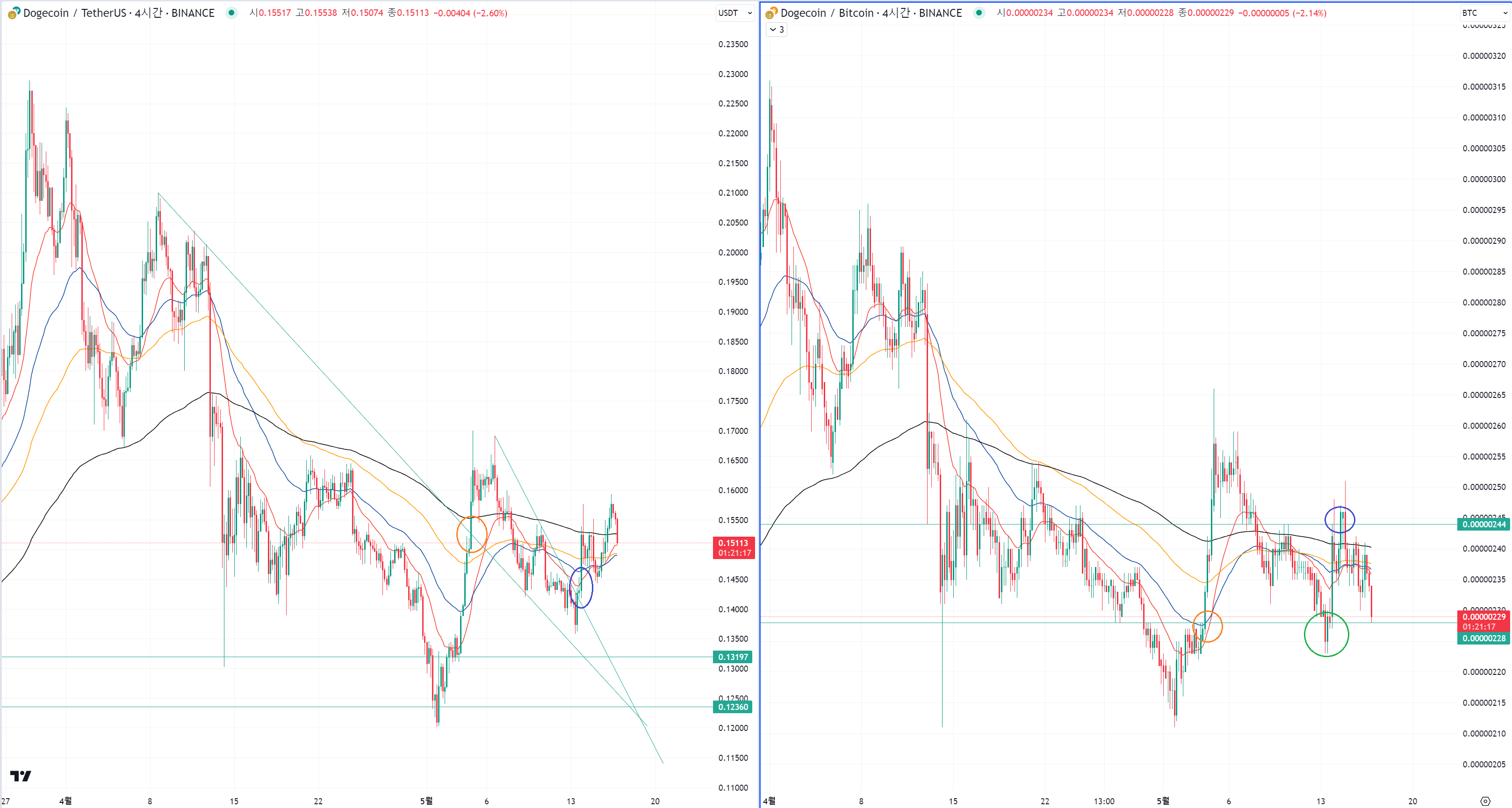 여기서 다시 지켜주면 도지는 다시 상승 추세 받기 좋은 상황이 됩니다.