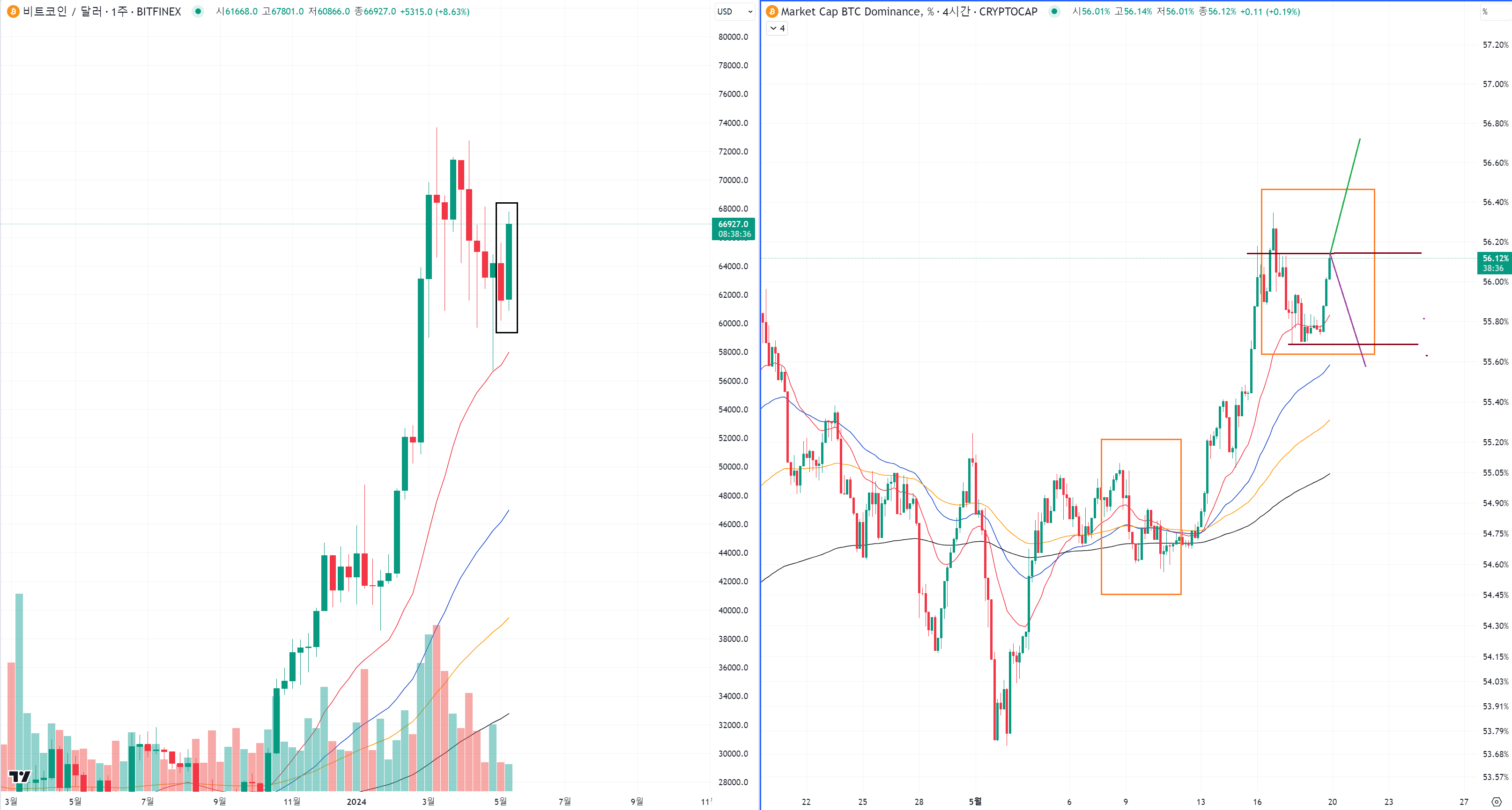 | 장대양봉 활용. 알트코인 펌핑 잘해줄 도미넌스 움직임. (0) | 2024.05.22 |