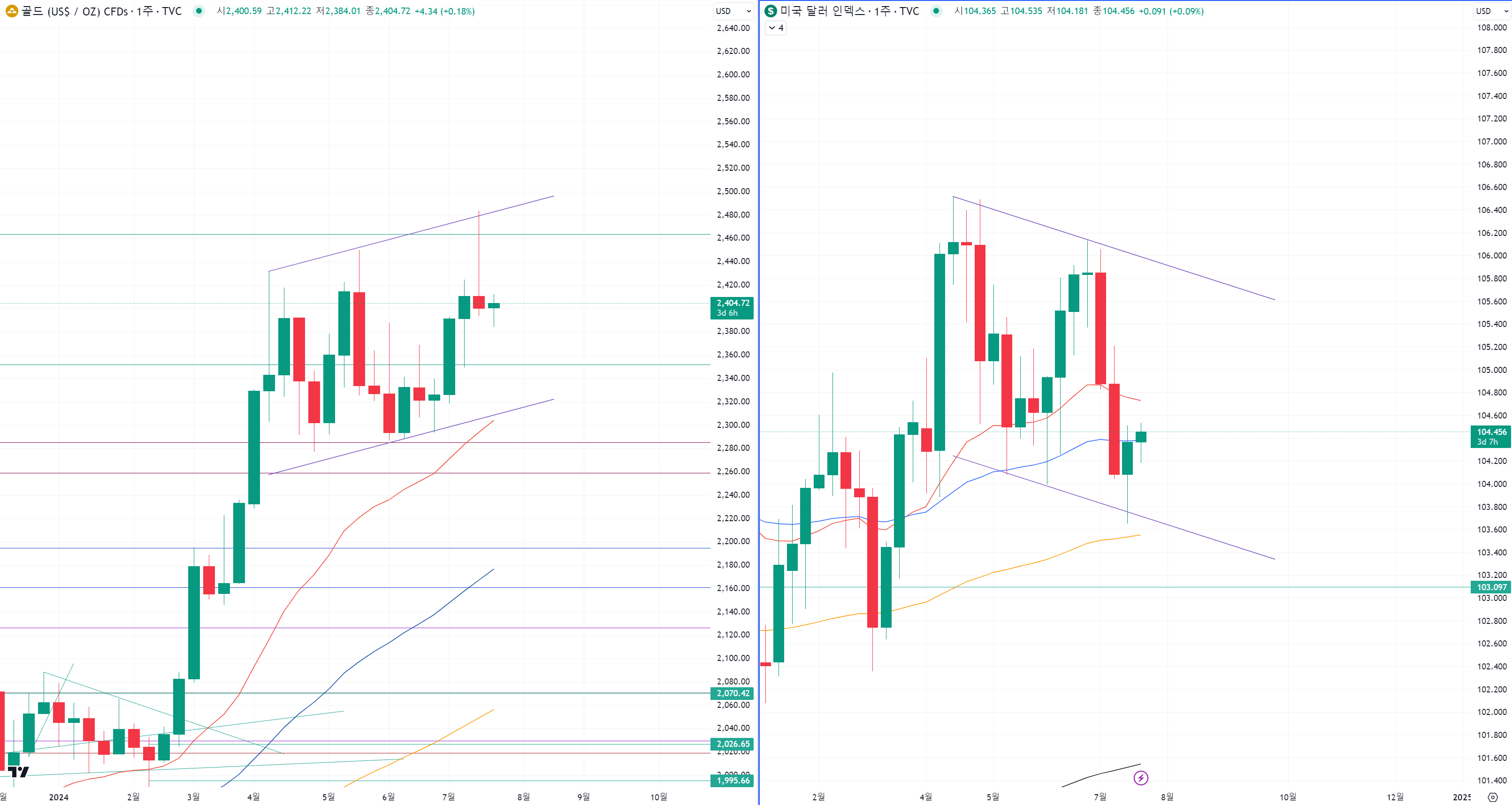 사실 다우도 골드와 거의 똑같은 주봉 캔들을 만들어 줬는데