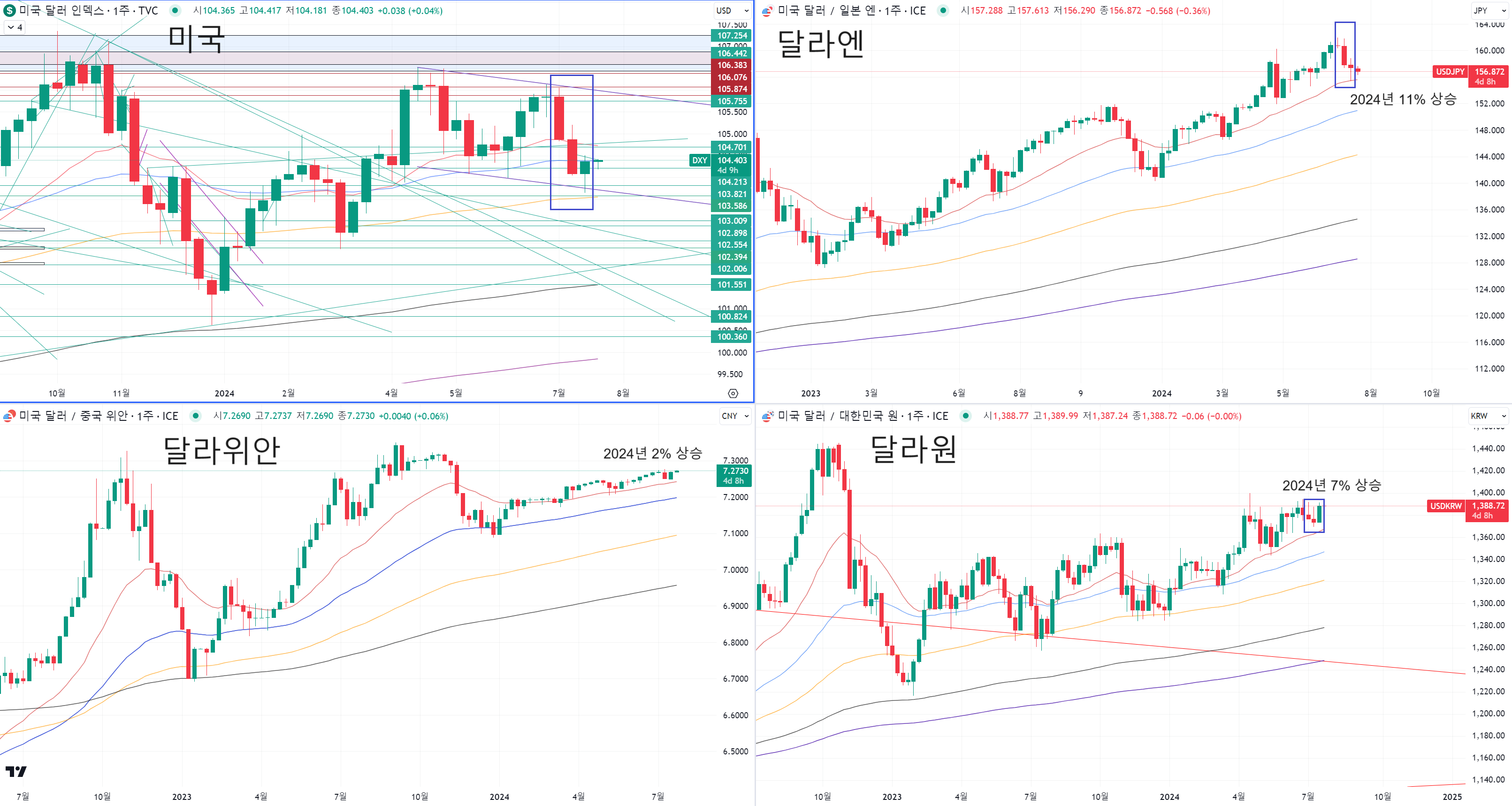 2024년 기준으로 달라인덱스 상승세에 가장 큰 영향을 준 것도 엔화예요.