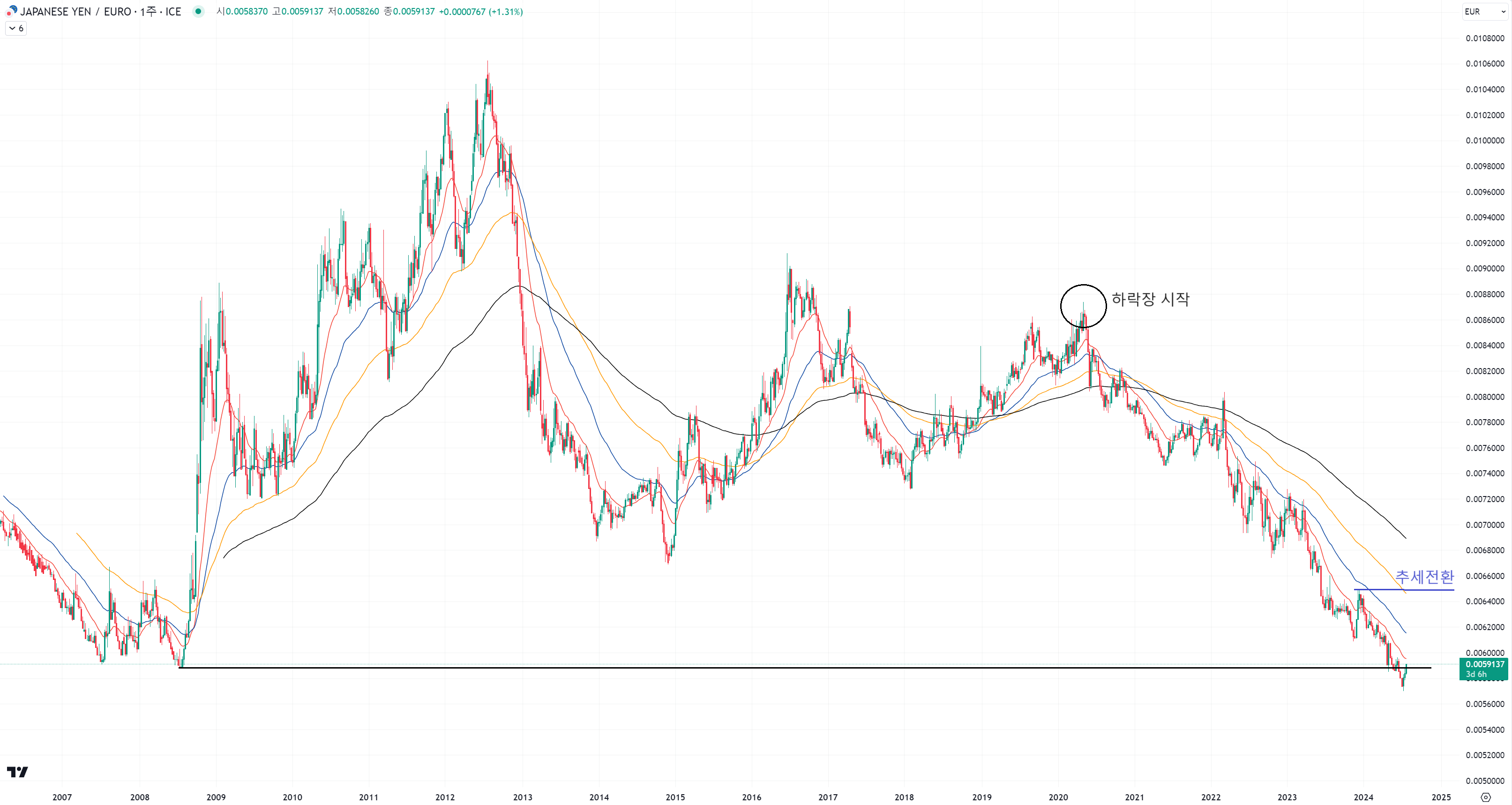 엔유로 차트를 보시면 최저점을 갱신 했습니다.