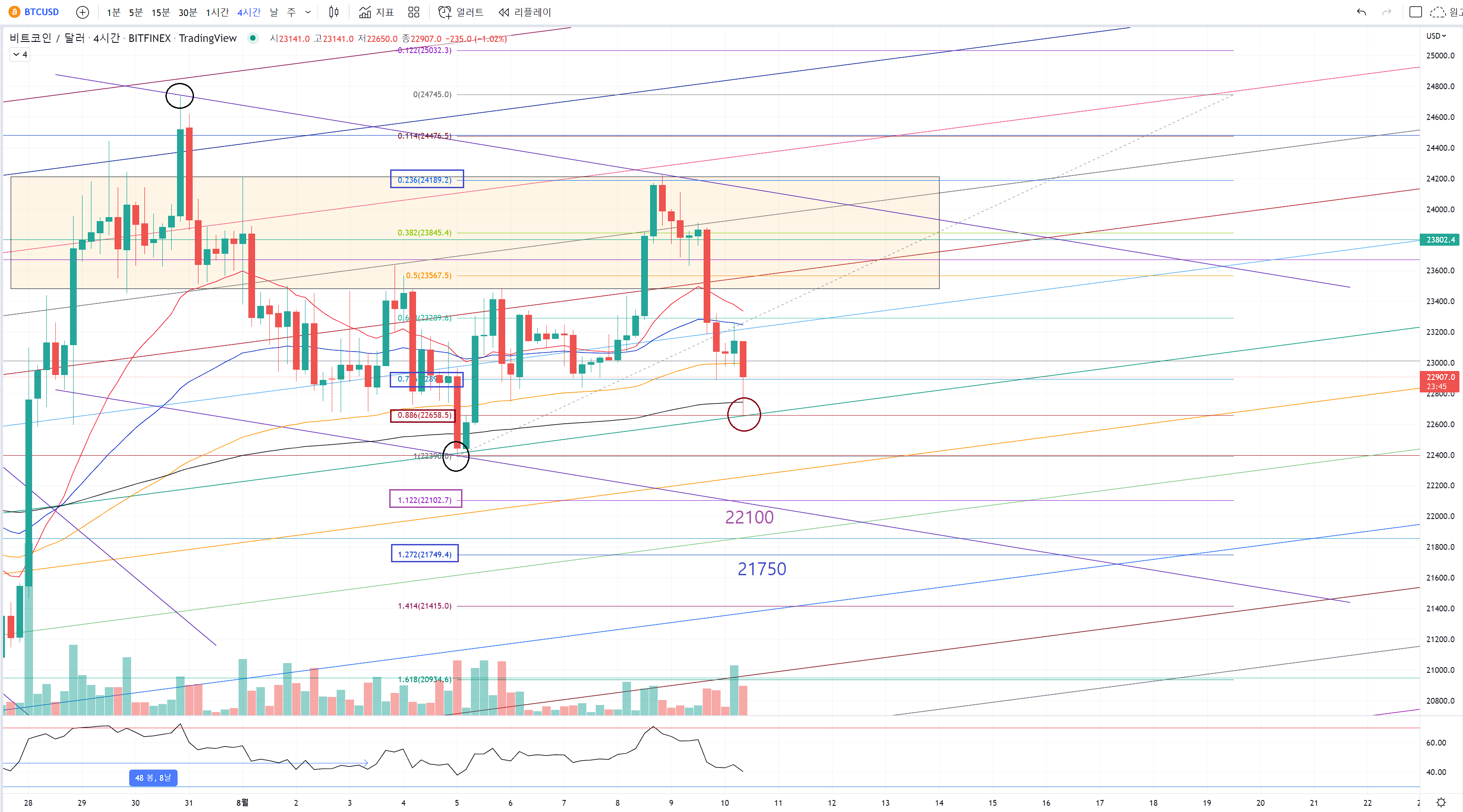만약 저점을 깨고 반등할 거라면 차라리 21750까지 하락 하는 것이 낫긴 합니다.