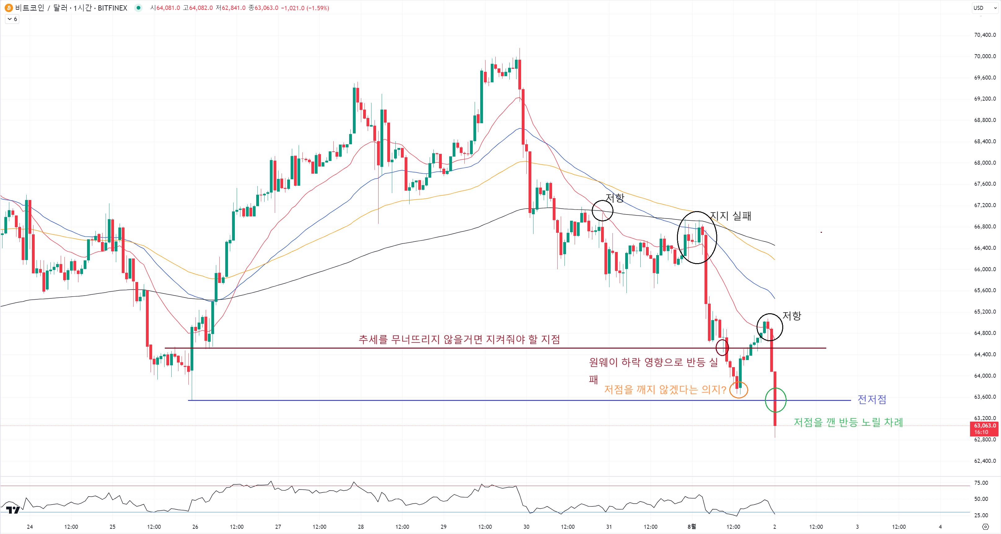 그럼 이제 이 경우 전저점 리테스트만 하고 추가 하락이 나올지를 확인할 차례였는데