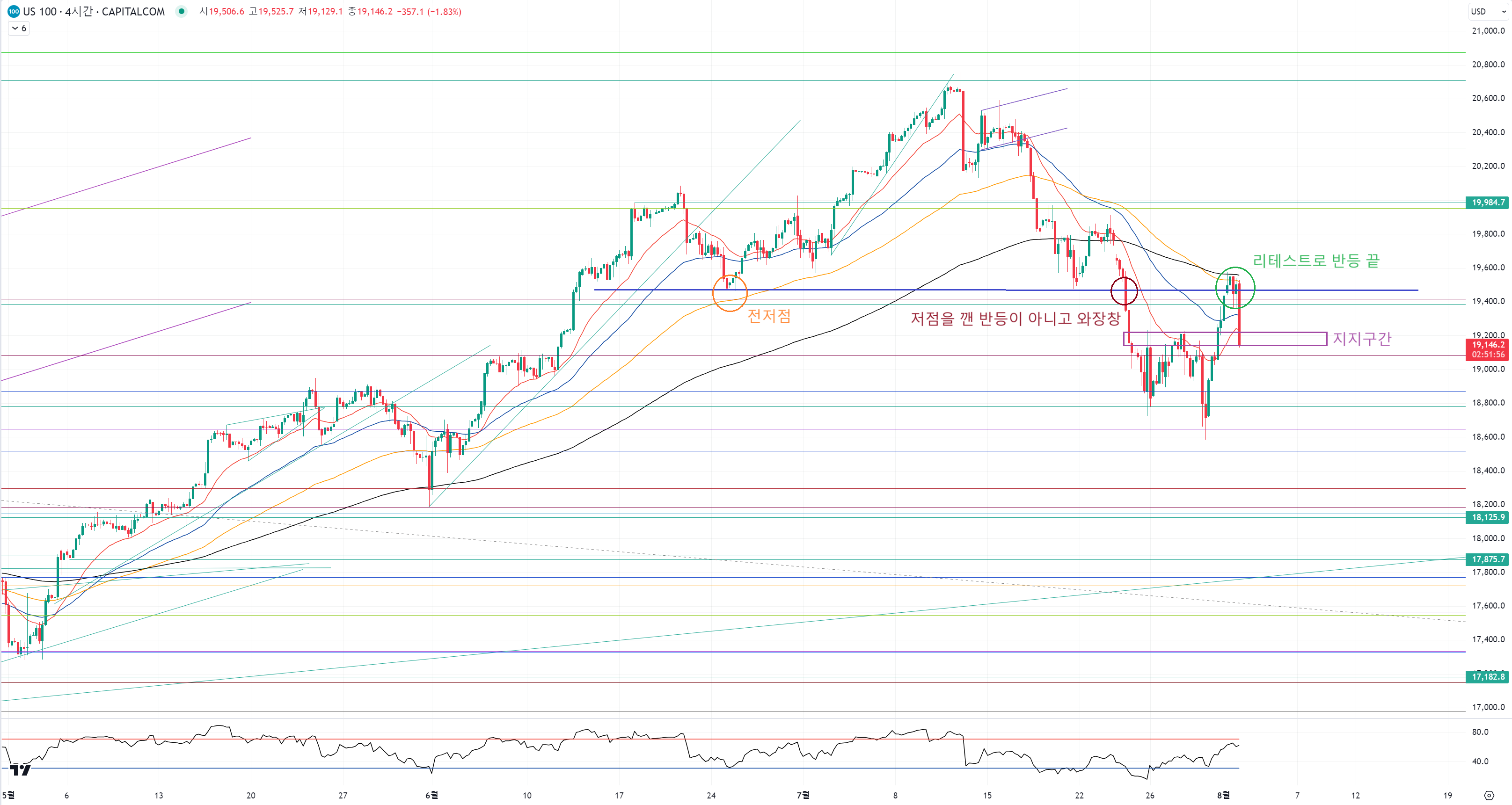 나스닥은 갈색 구간에서 전저점을 무너뜨리고