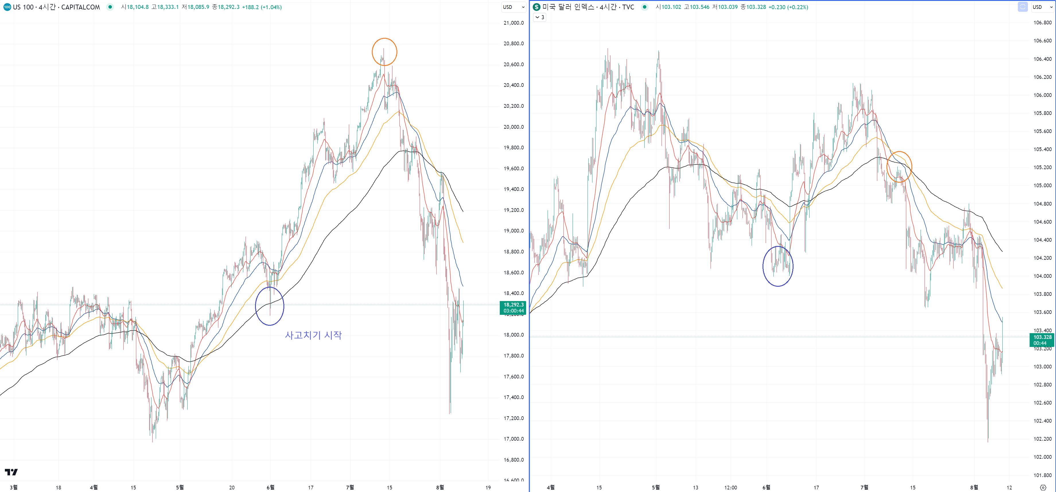 설명을 좀 길게 했지만 지금 나스닥과 달라의 리듬이 커플링이라는거예요.