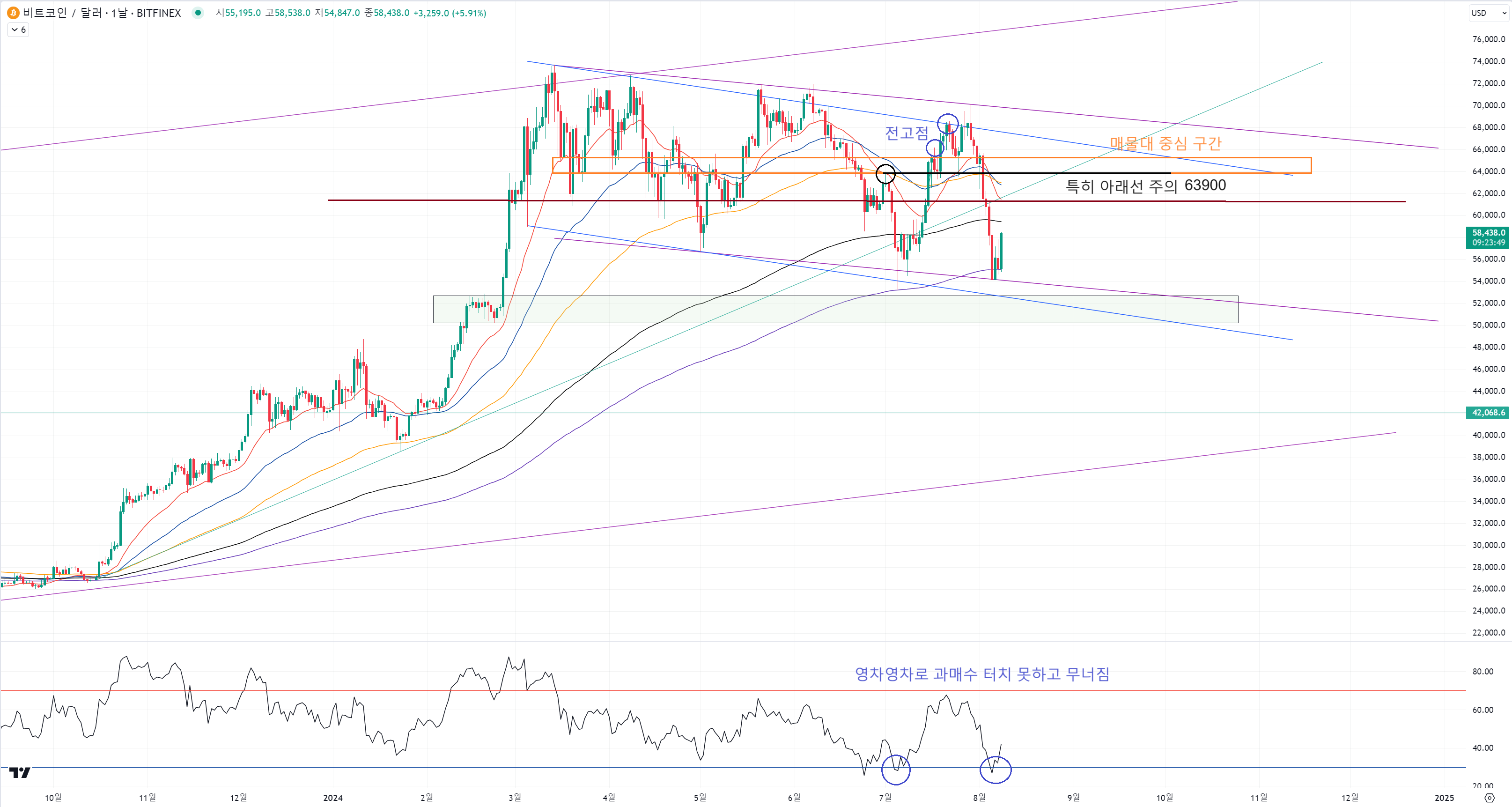 | 금융시장 한주 정리. 비트코인 원웨이하락과 주봉50일선. (0) | 2024.08.12 |