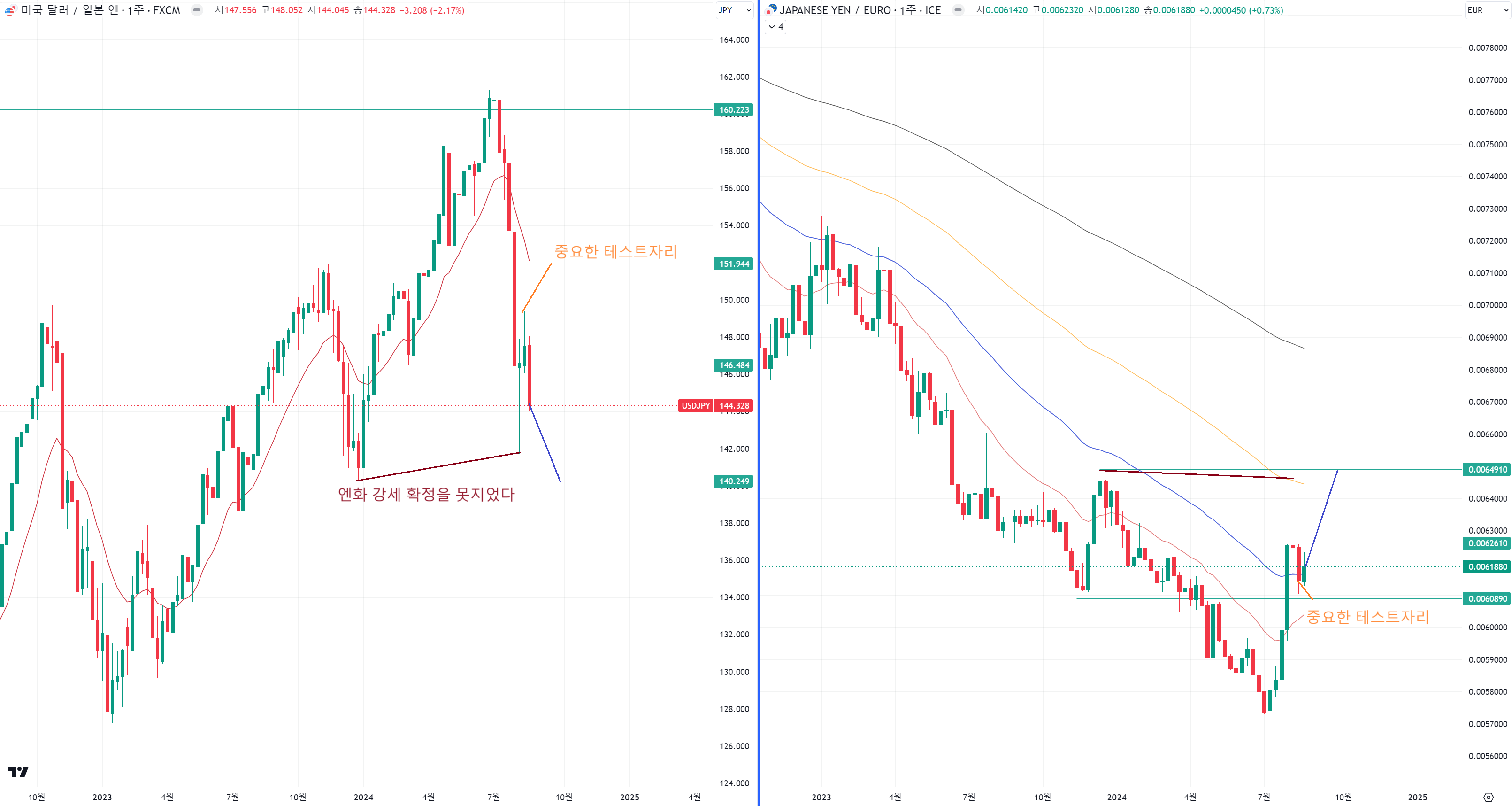 지금은 이미 7월부터 이어진 엔화 강세에서 현물 시장의 가격대가 무너진다라는걸 확인시켜준 이후기 때문에