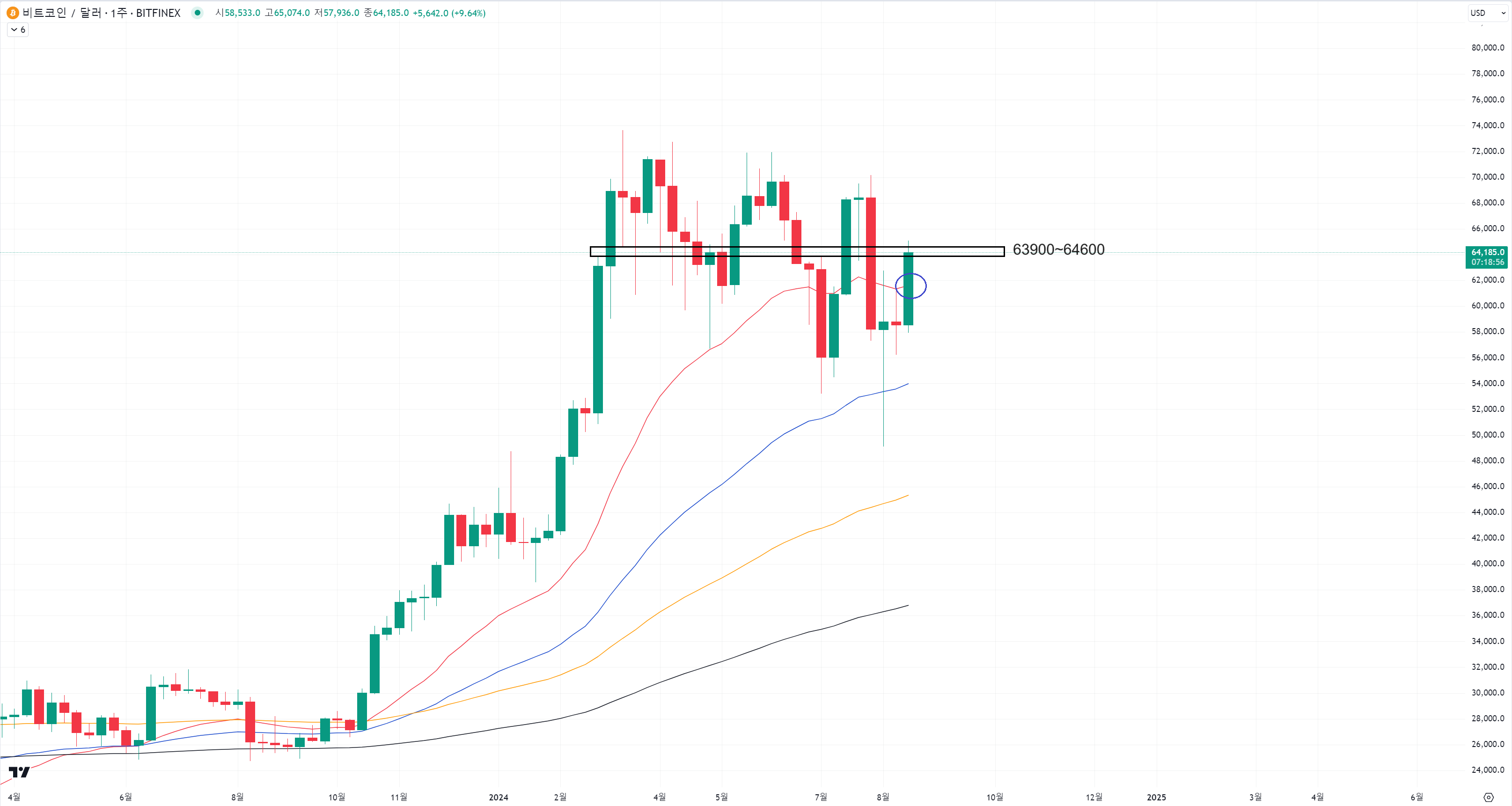 어쨌든 현재는 63900부터 시작되는 저항 구간에 도달하고 주말에 되서 횡보 중입니다.