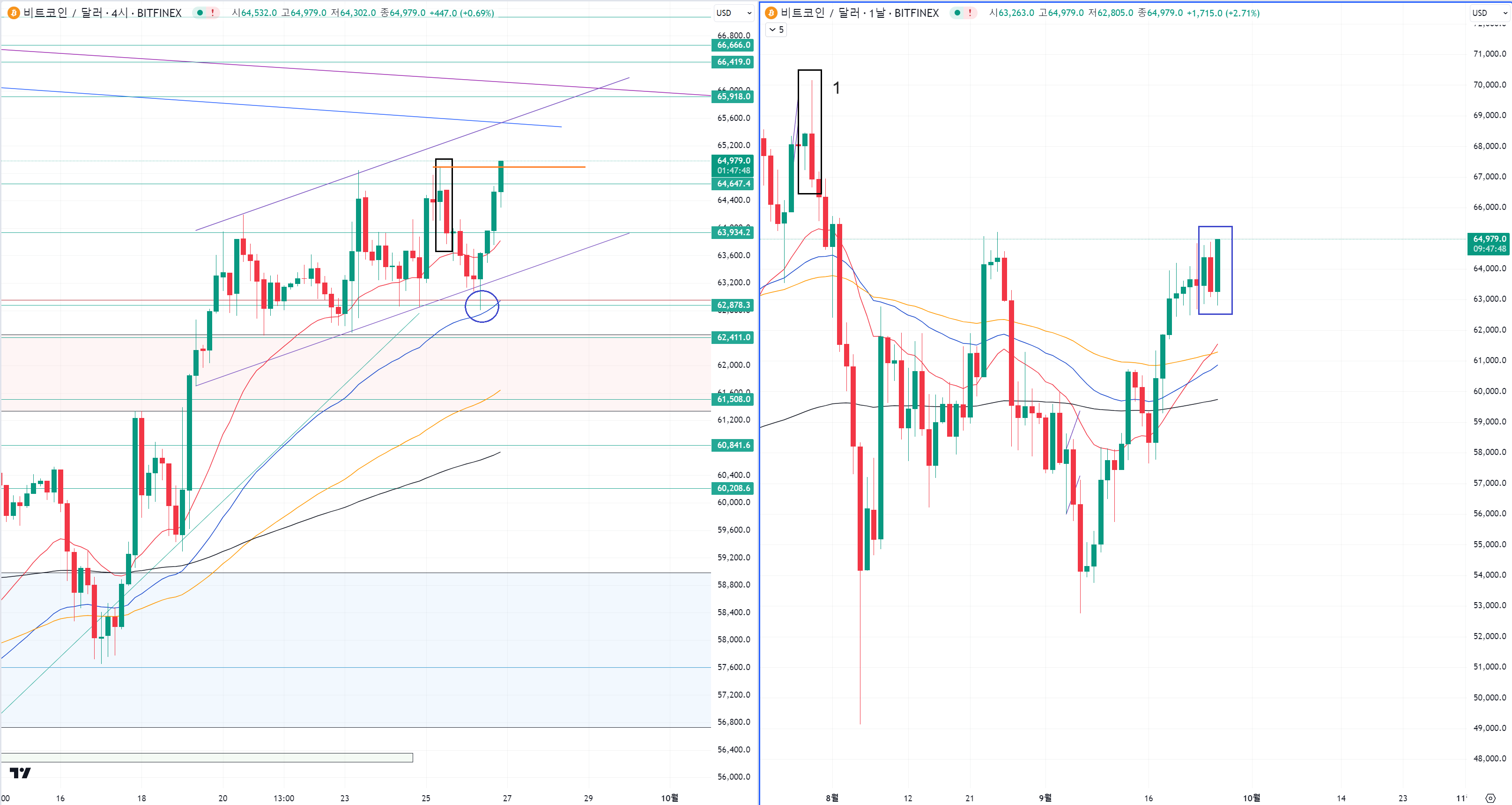 왼쪽은 4시간봉이고 오른쪽은 일봉입니다.
