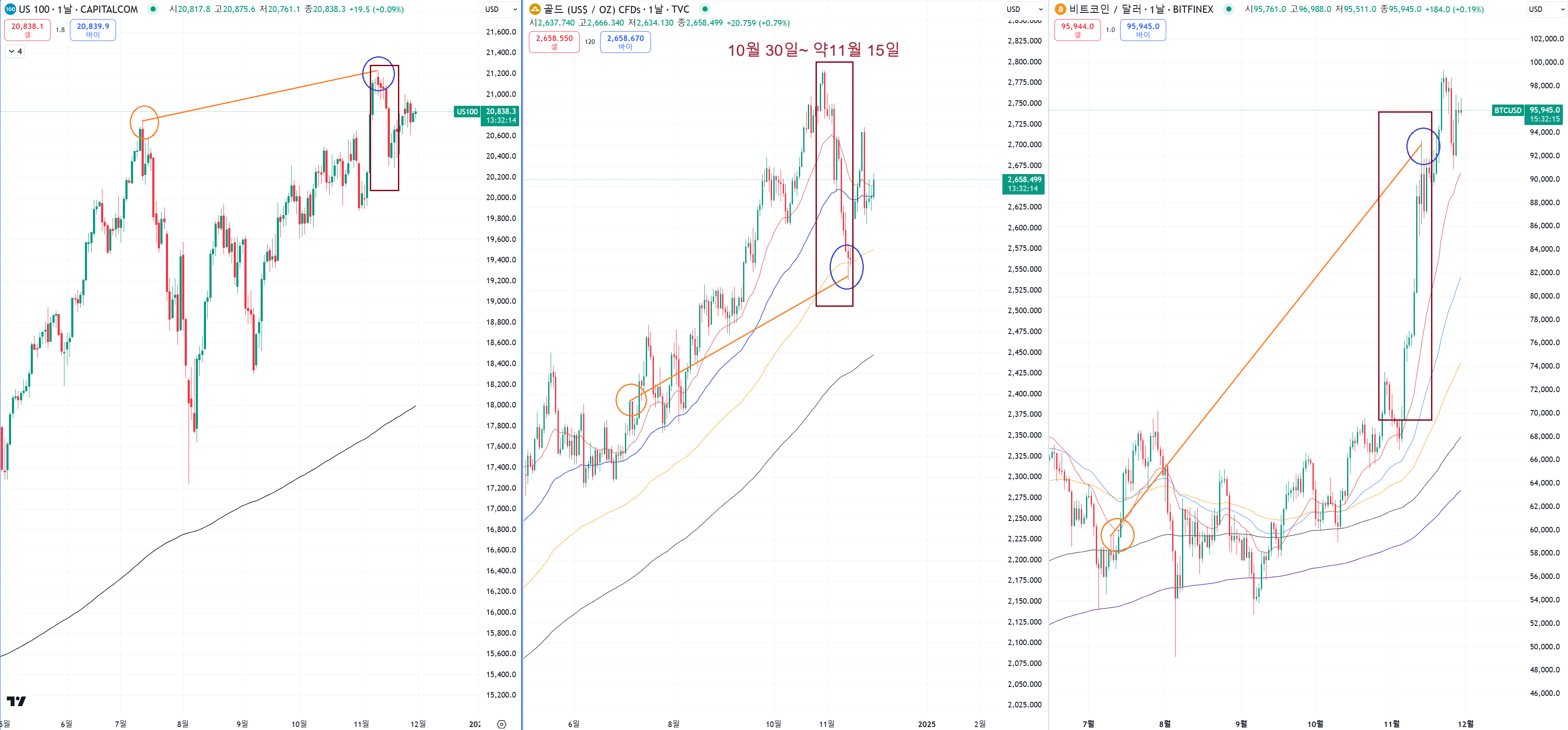 저때 미국증시 골드 비트코인 전부 상승했습니다.