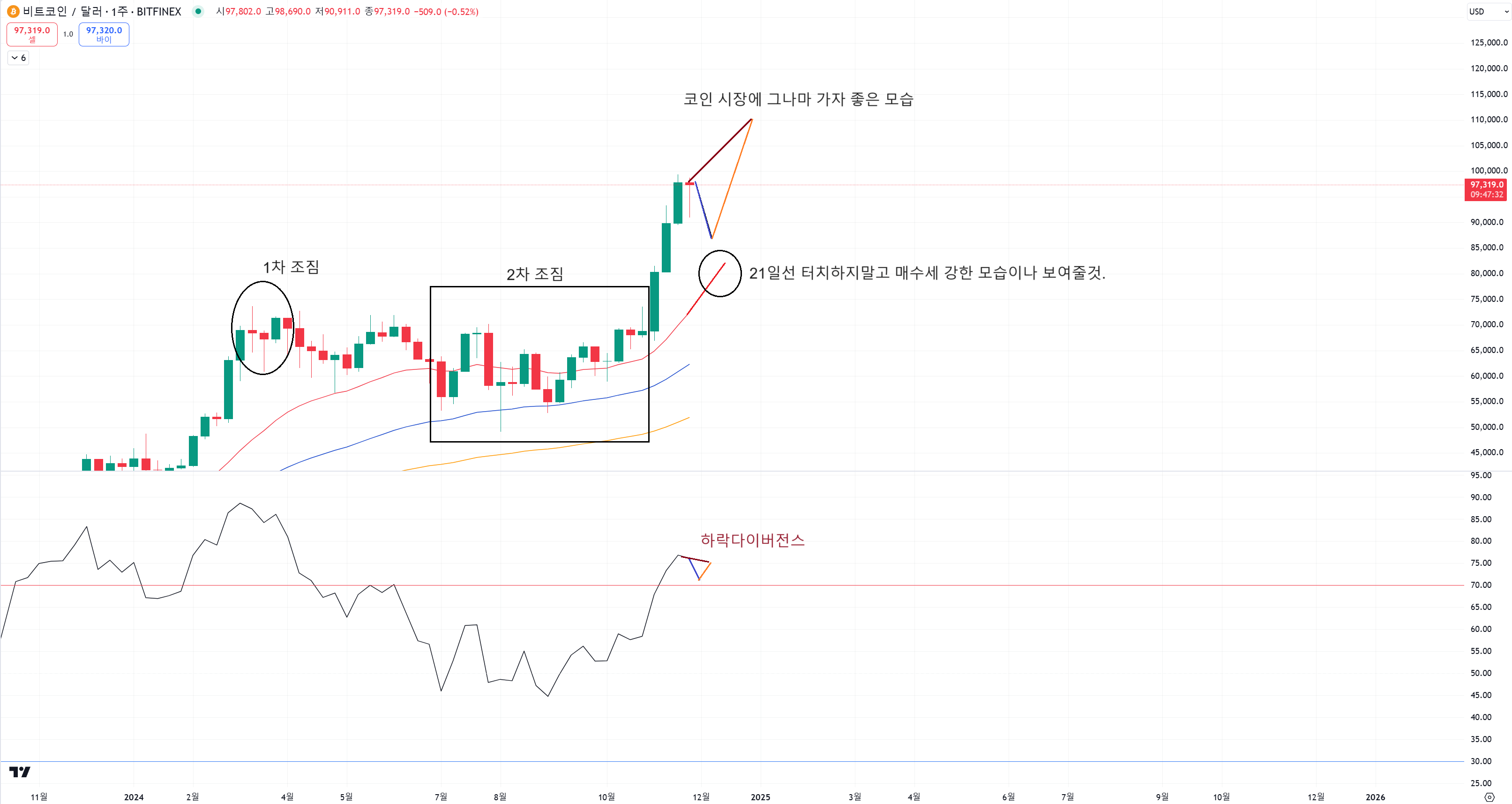 | 비트코인 조정시 매수 지점과 주의할선. 우당탕탕불장 시나리오. (1) | 2024.11.26 |