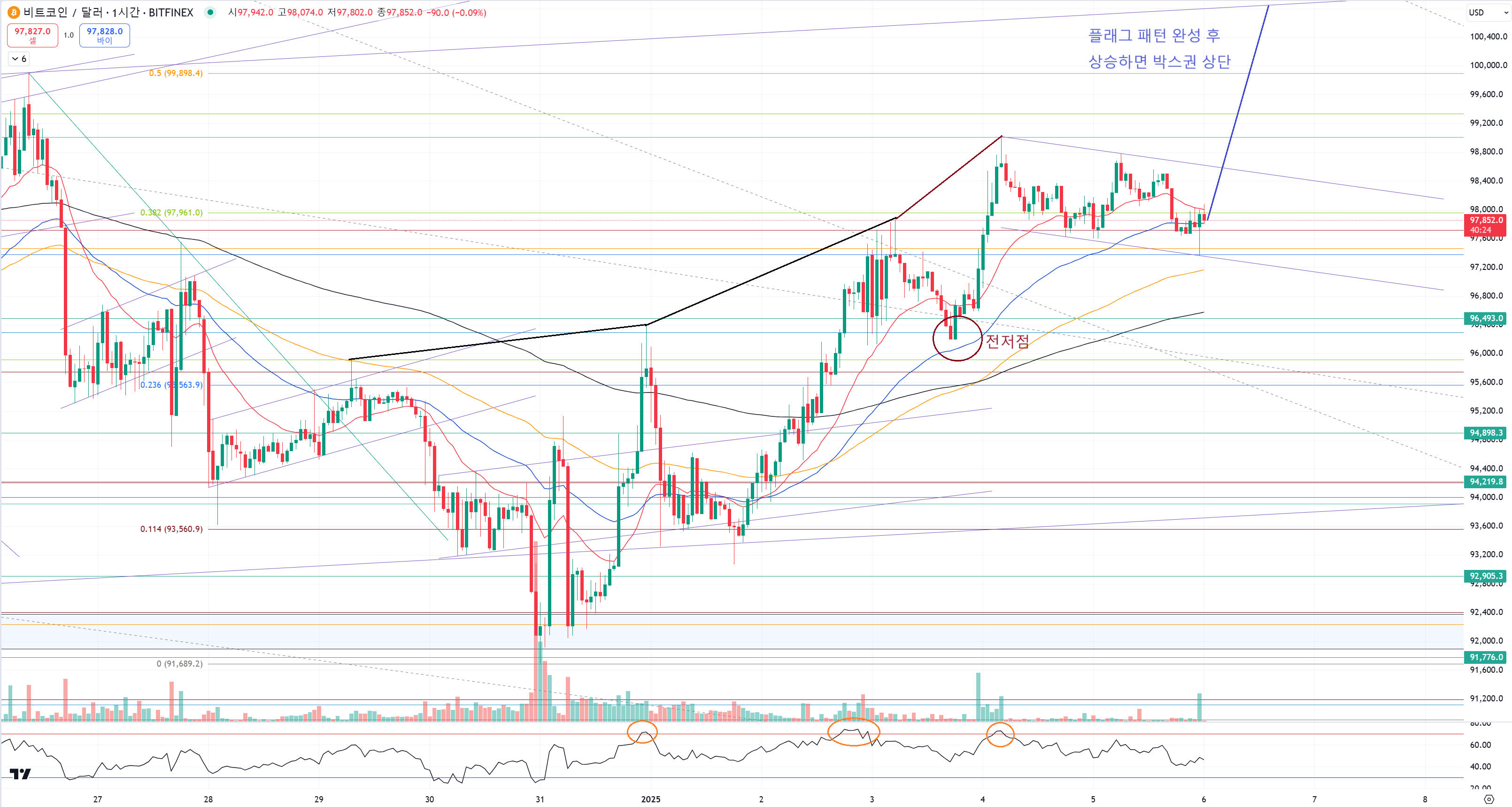 이번주 주봉 마무리가 99800 위에서만 되면 가장 좋습니다.