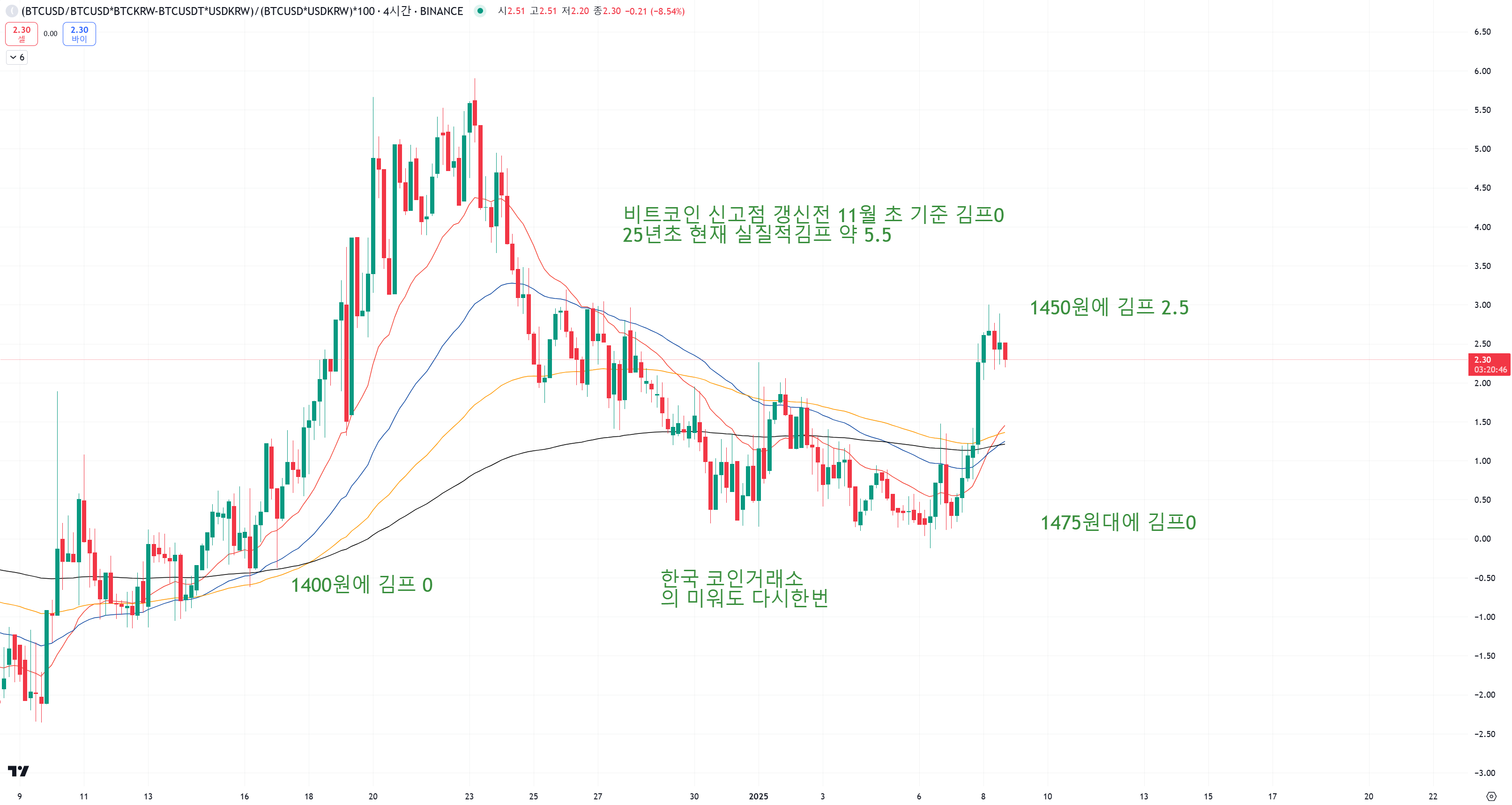 거기에 맞춰서 한국 거래소도 김프 조정을 좀 강하게 주고 있습니다.