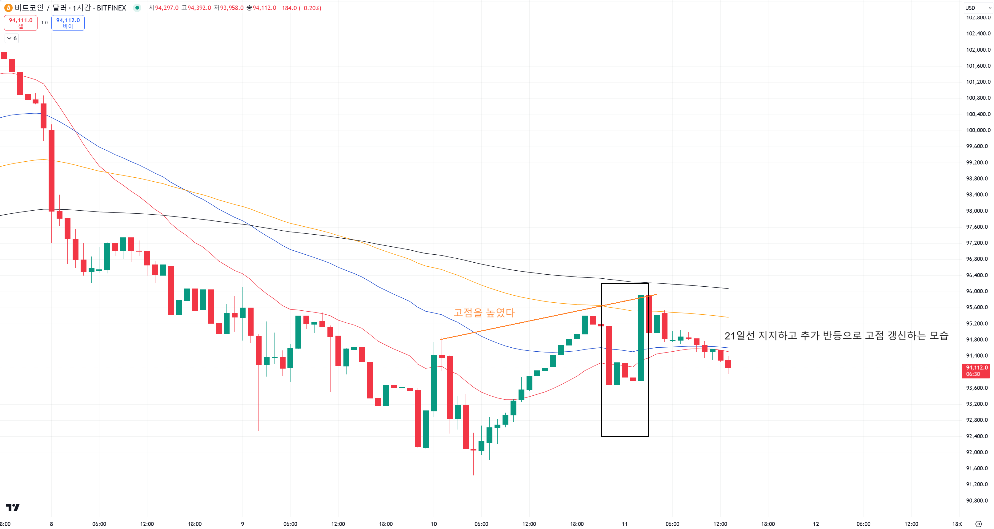 1시간봉에서보면 일단 고점을 갱신하고 조정이 온거라 다행입니다.