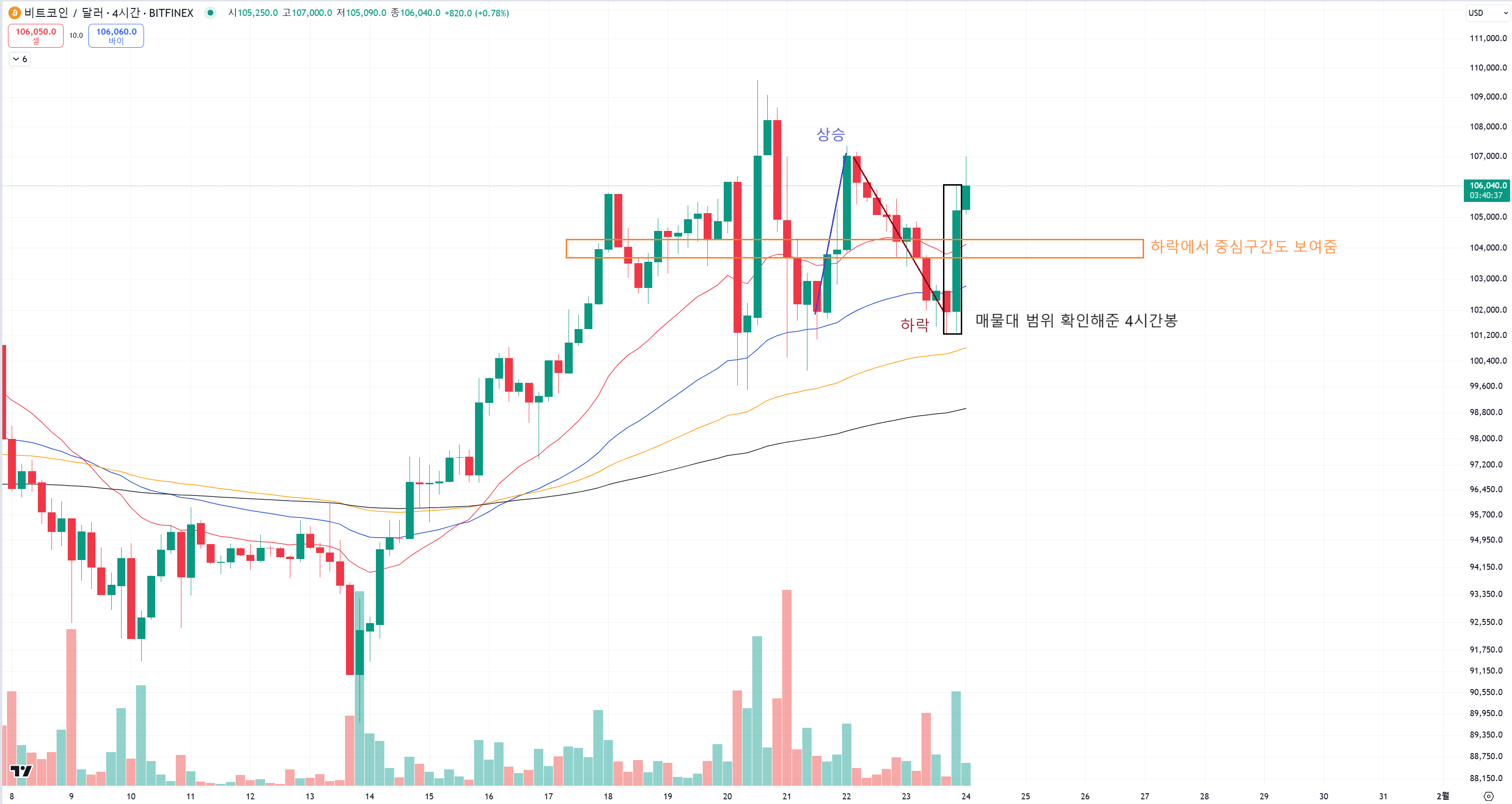 하다못해 매물대 하단과 상단을 이미 이전 글에 표시를 해뒀는데도