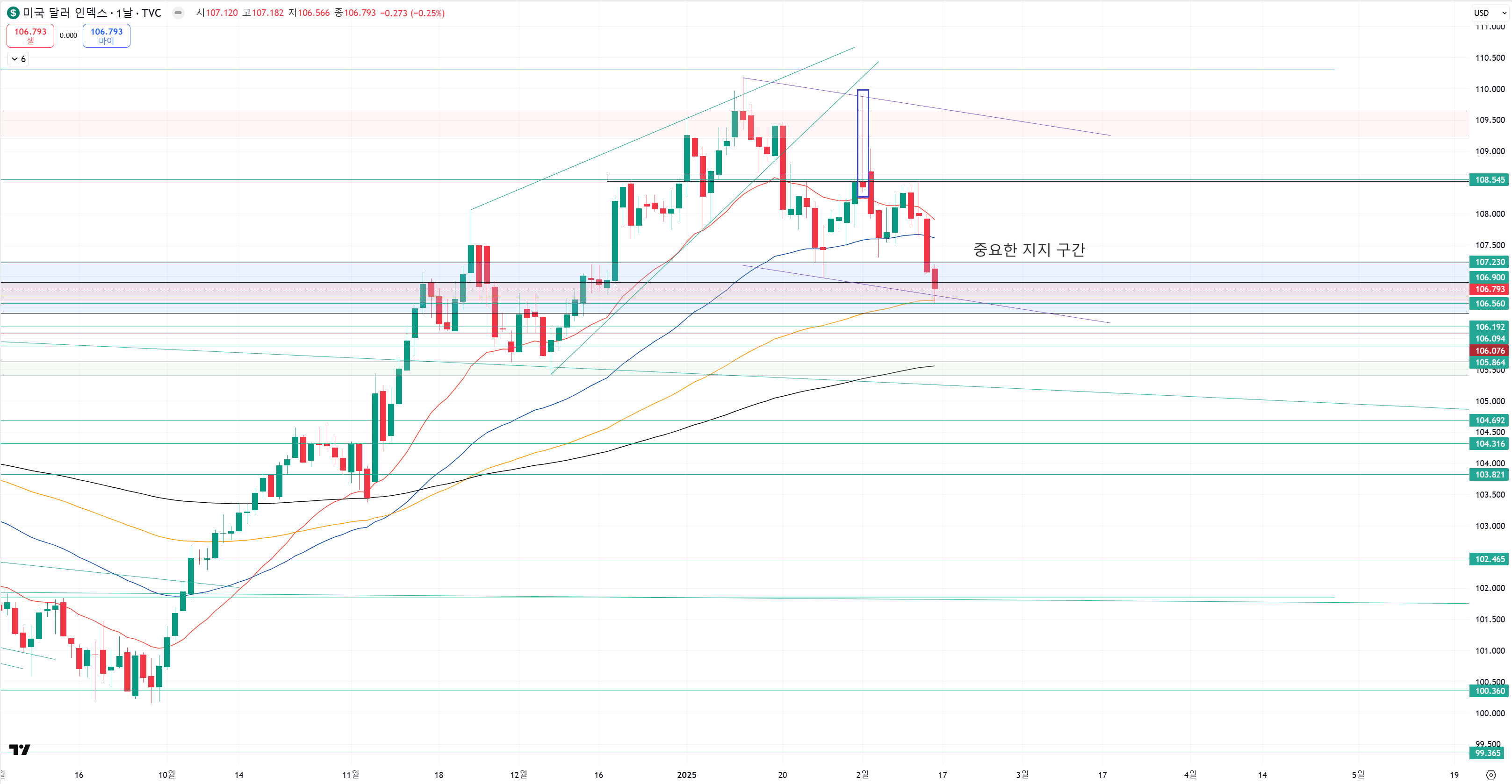 어쨌든 달라는 다시 반등을 할 수 있는 구간까지 조정이 왔어요.