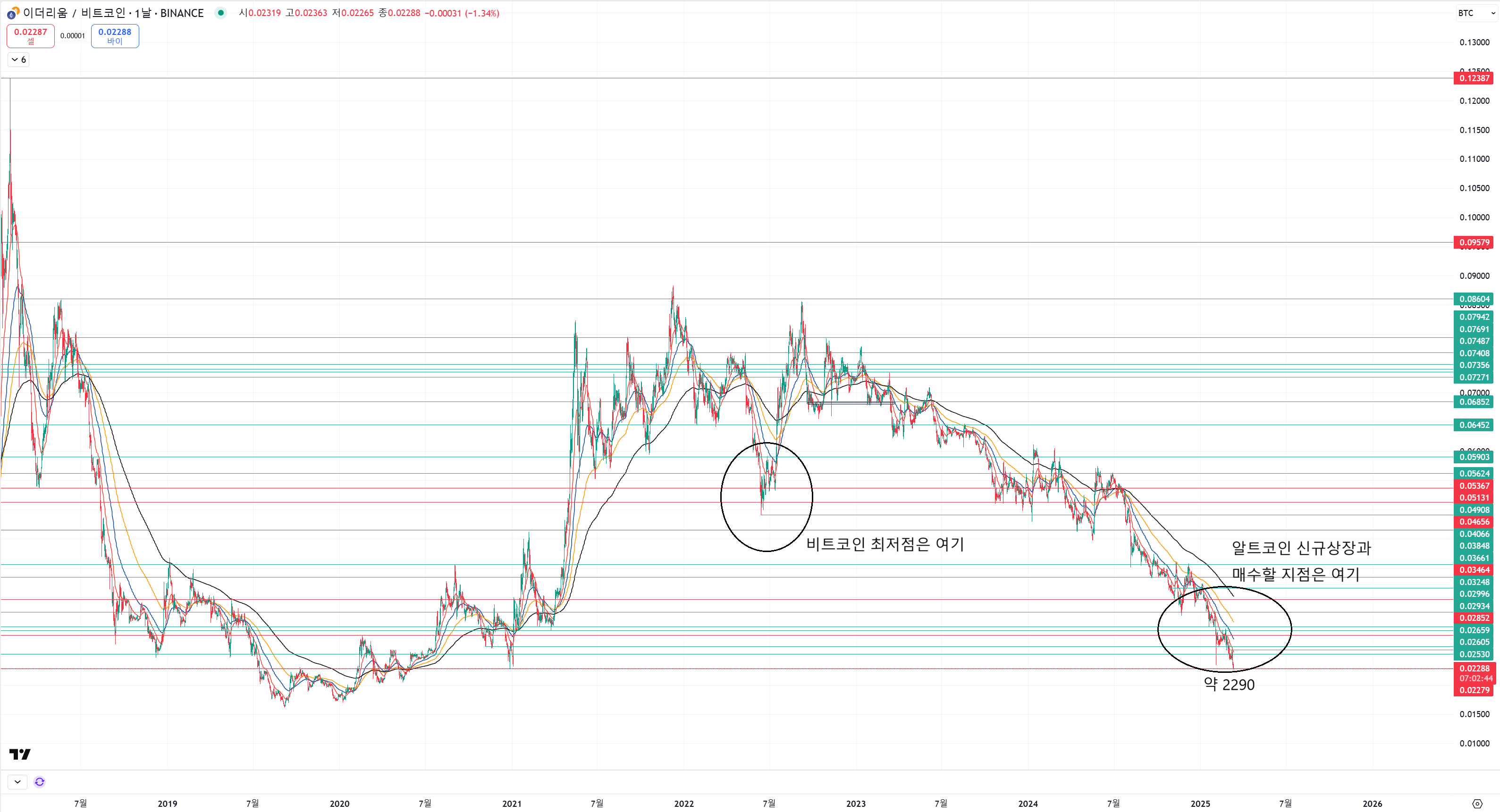 이더리움 BTC 차트에서 몇개의 빨간색선이 보일거예요.