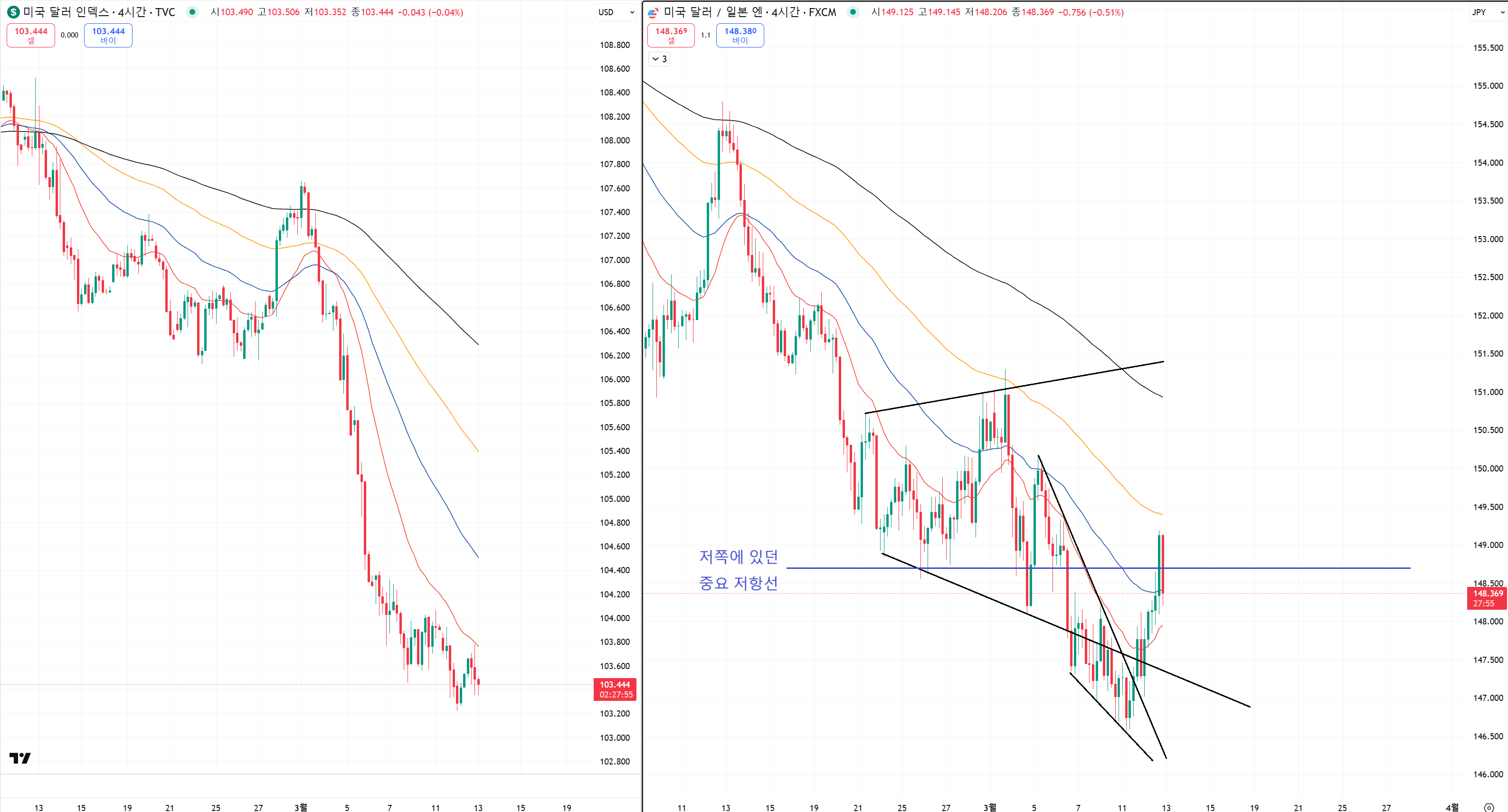 특히 3월 10일 음봉이 추세반전 캔들입니다.
