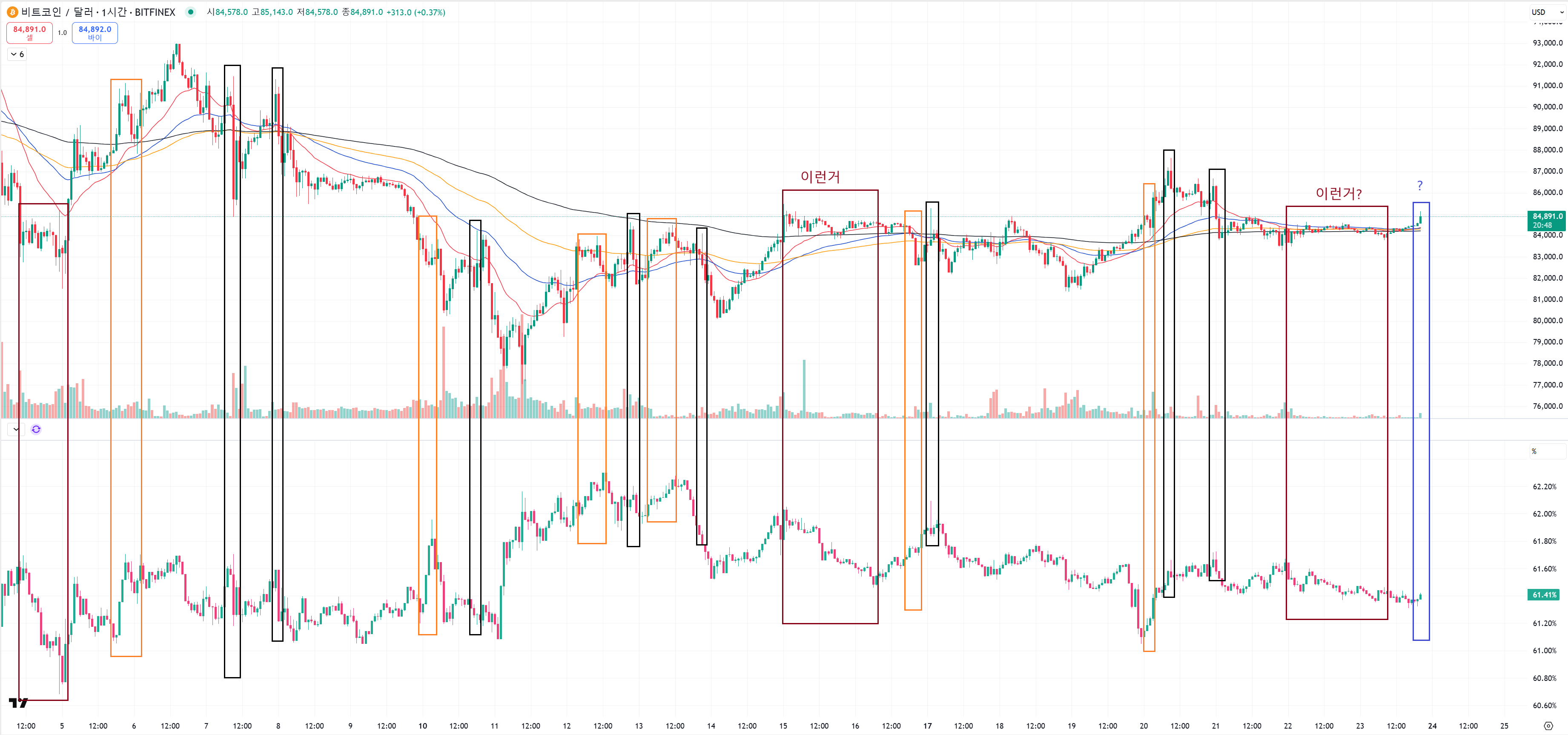 그냥 올라오면 무지성으로 자리만 나오면 비트코인은 숏으로 강제로 찍어 눌렀고