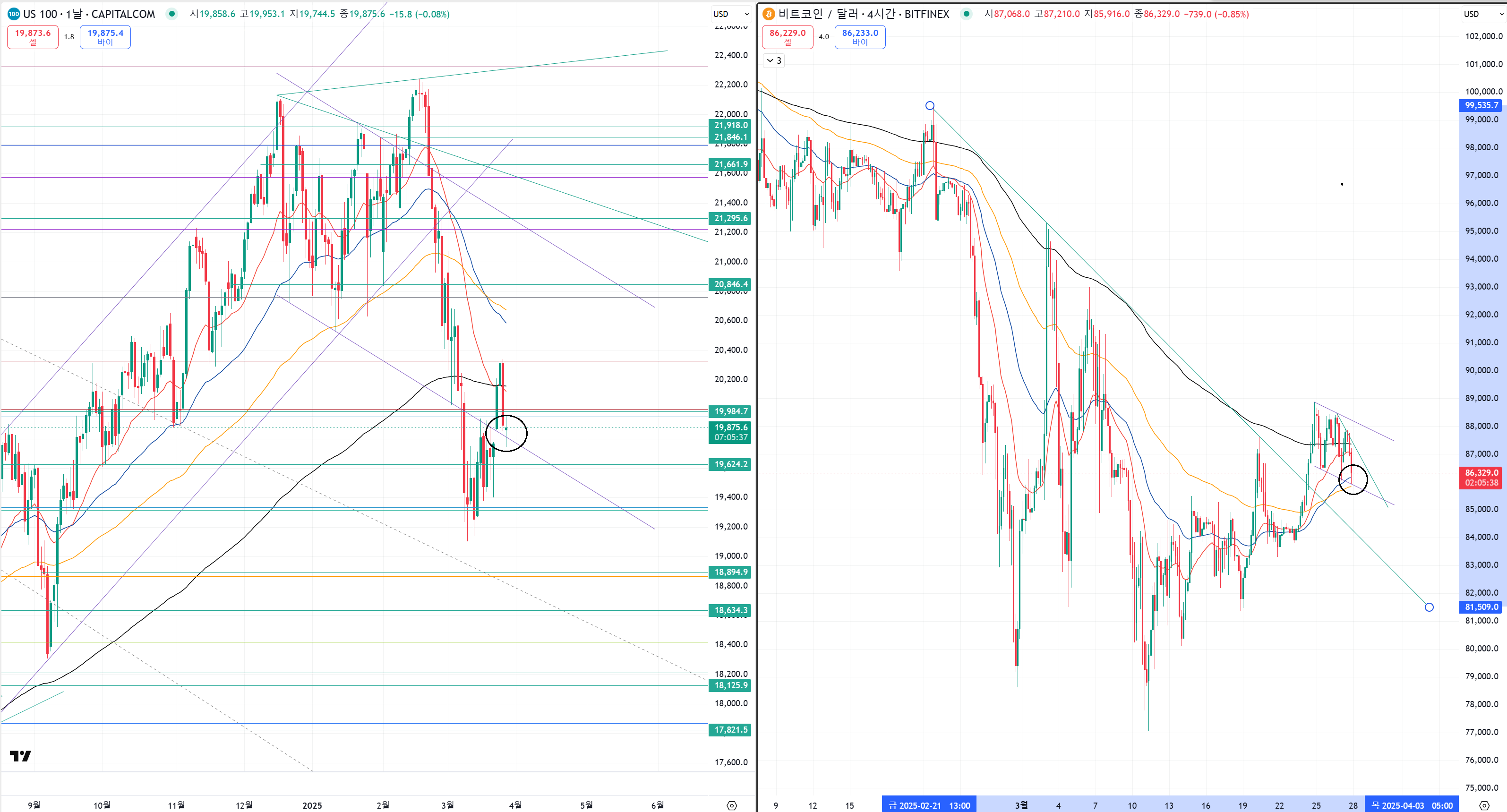 이번주에 나스닥과 비트코인이 각각 중요 저항 구간과 하락추세선을 돌파하면서