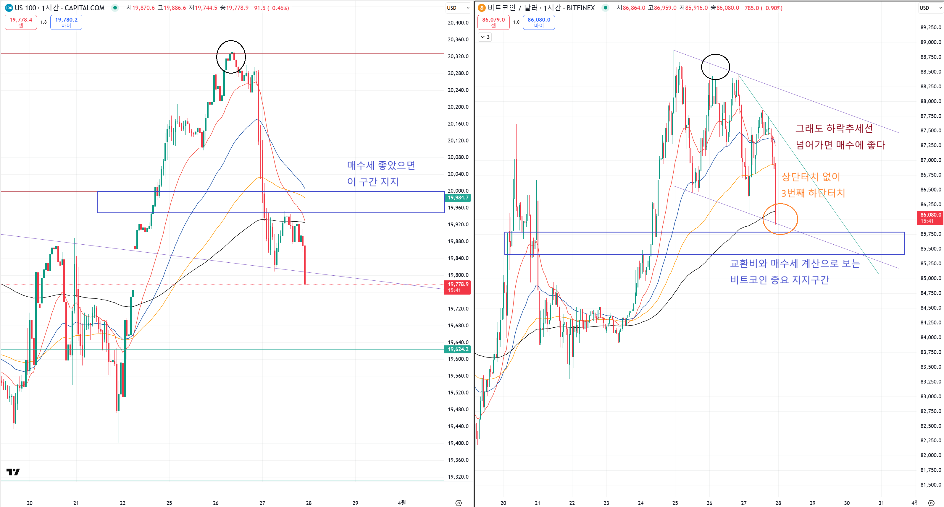 나스닥도 비트코인도 중요 저항선에서 조정타이밍이었는데