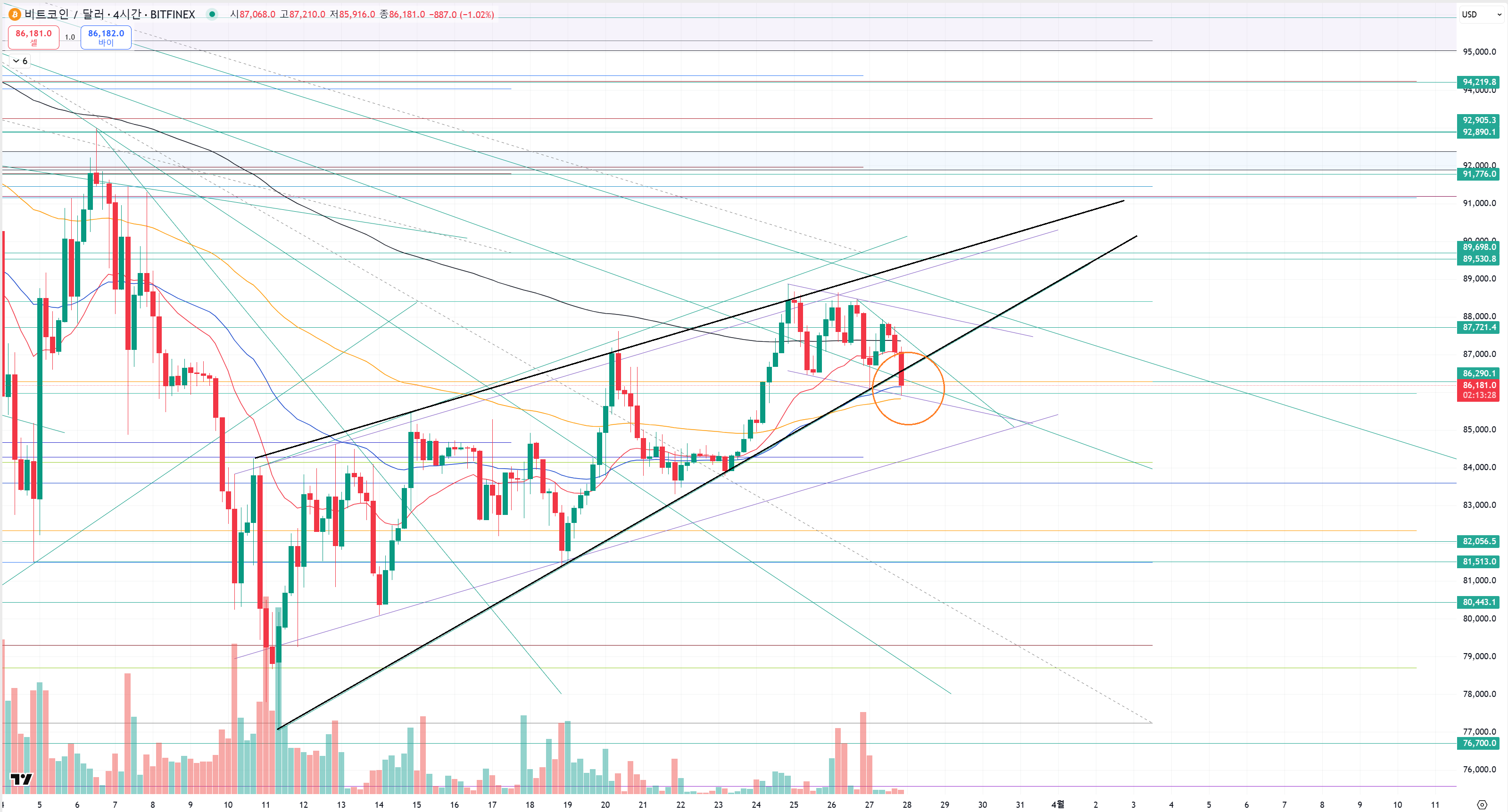 비트코인도 파랑색 구간인 85500 주변 구간이 있었습니다.