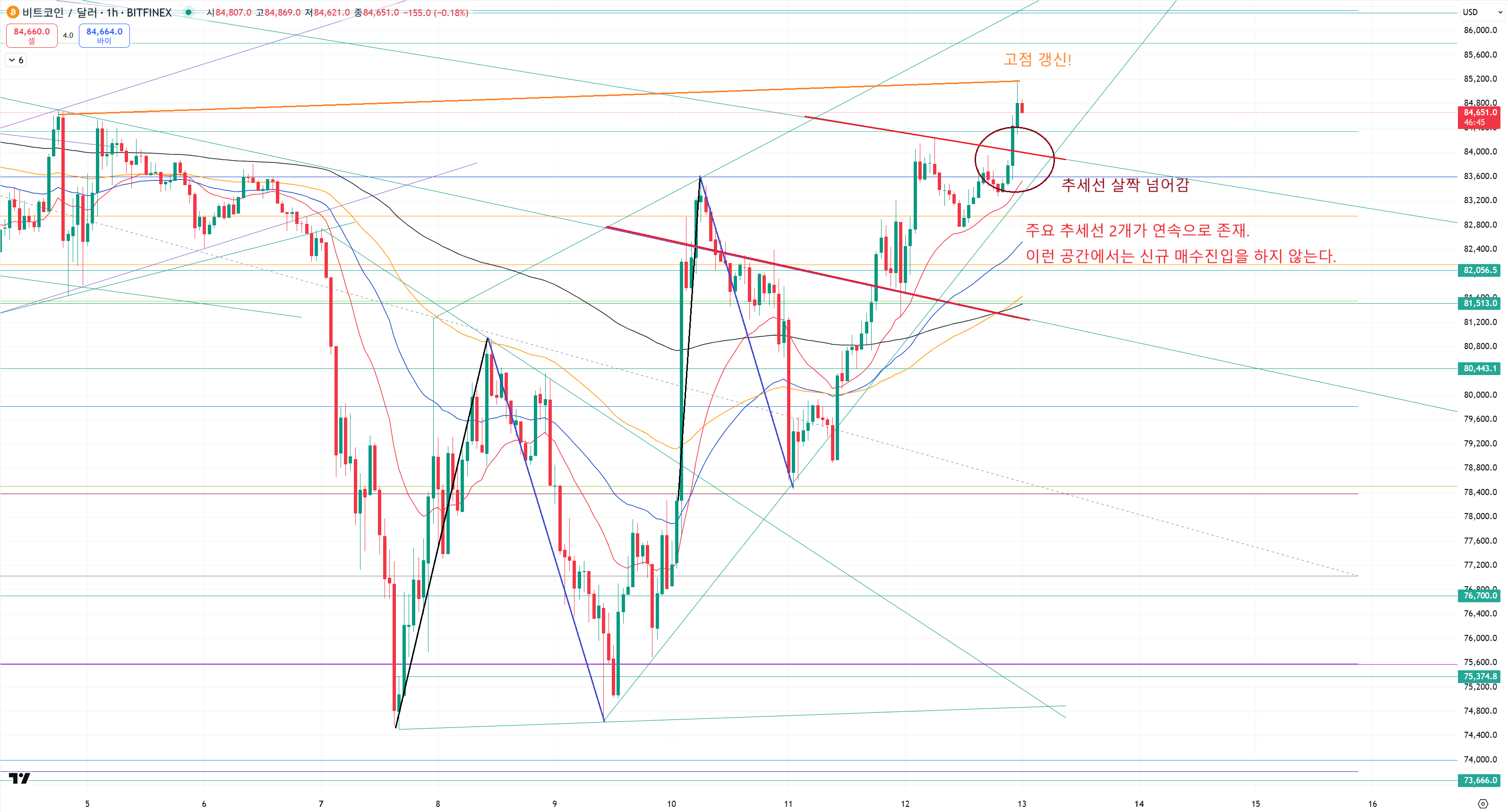 추세선을 넘어가는것과 전고점 갱신을 동시에 해줘야 하는데