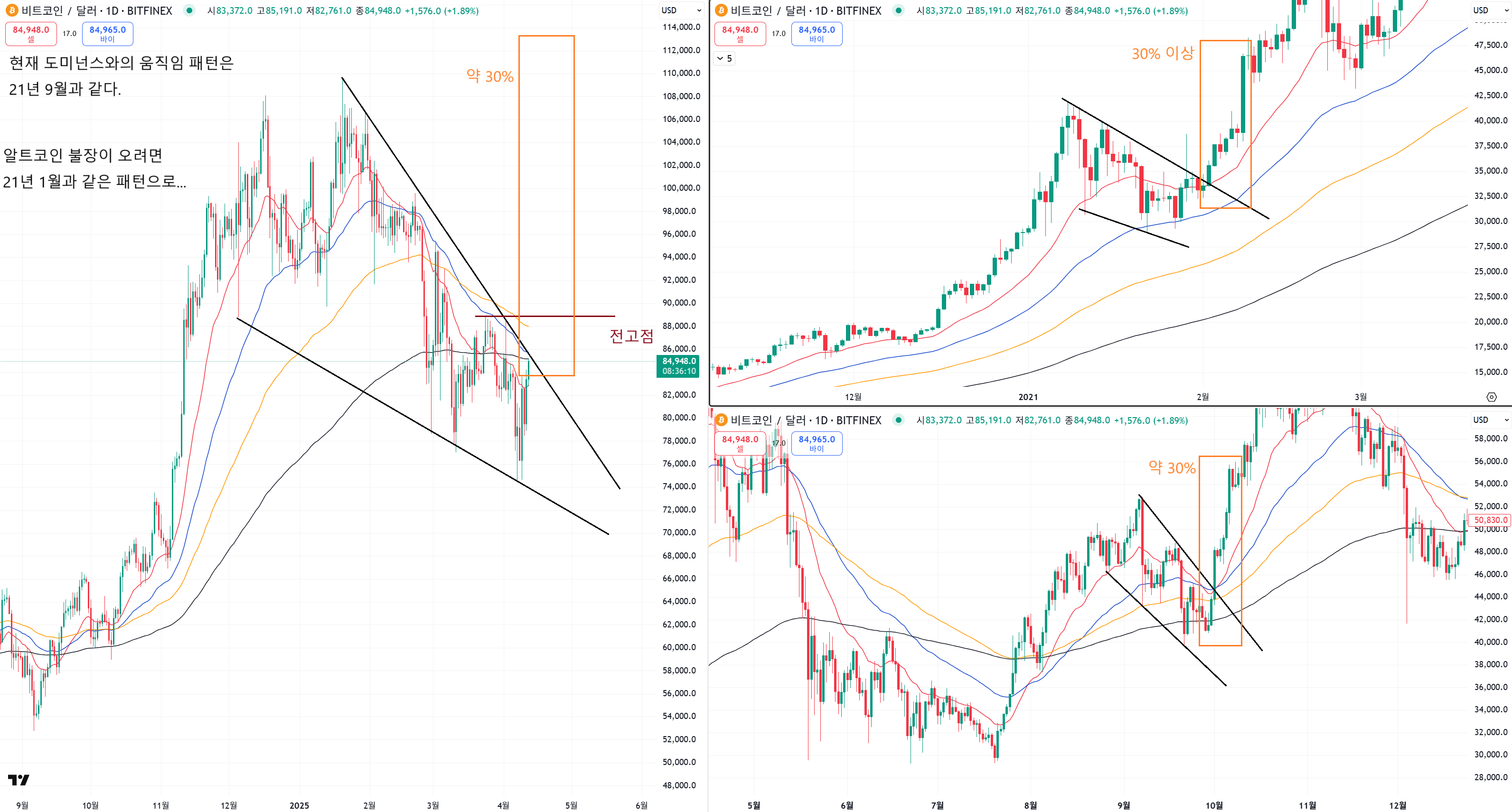 25년 4월인 현재는 21년 9월과 패턴이 비슷합니다.