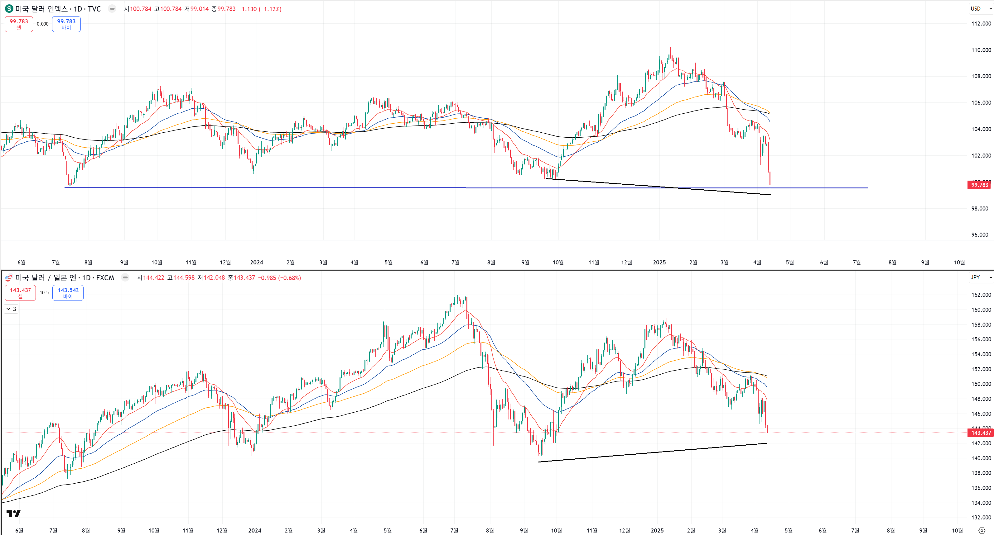 위에는 달라인덱스와 아래는 달라엔 차트입니다.