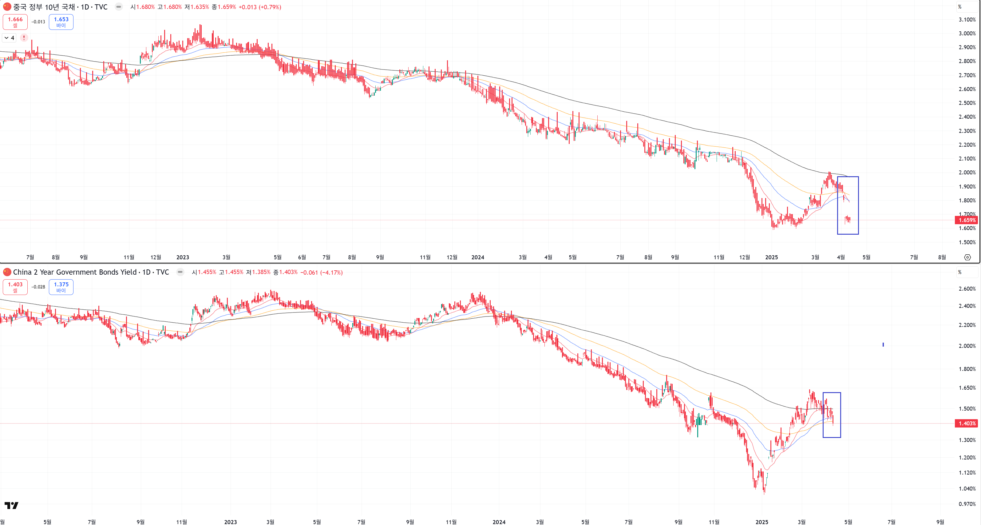 실제로 차트도 2023년 기점으로 미국채권을 팔고 중국채권을 사는 모습은 대놓고 보였습니다.