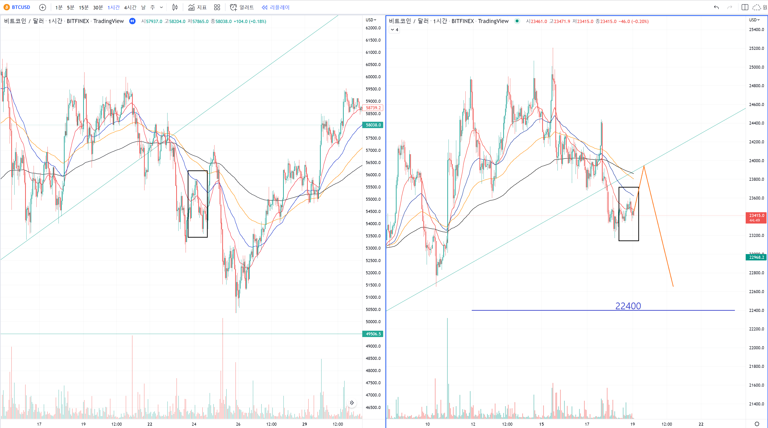 | 추세선 벗어난 비트코인. 21년 8월과 비교. 세력이 작업치는 모습. (0) | 2022.08.18 |