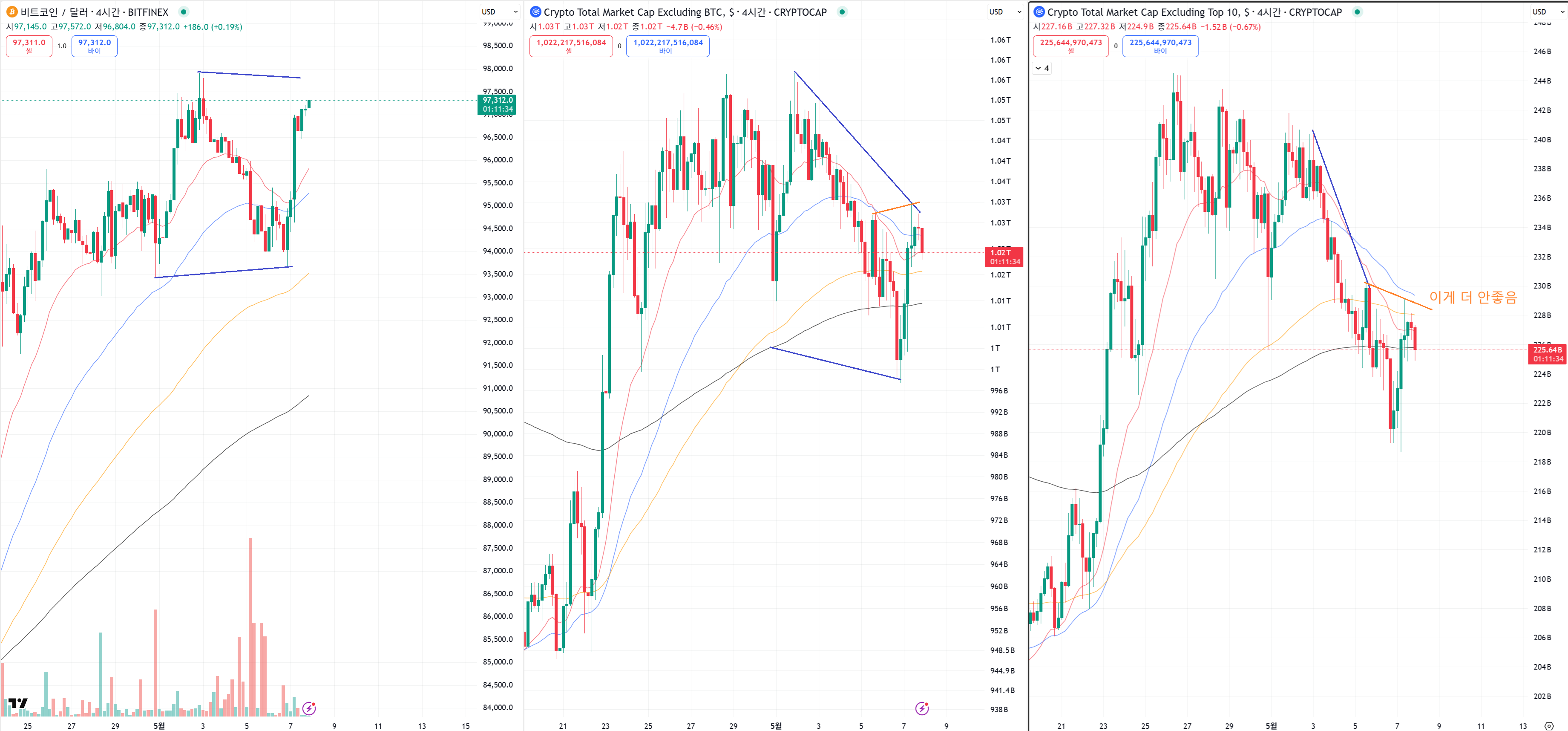 5월 2일쯤부터의 횡보를 보면 노골적으로 비트코인은 더 상승도 못하고 밍기적대는데