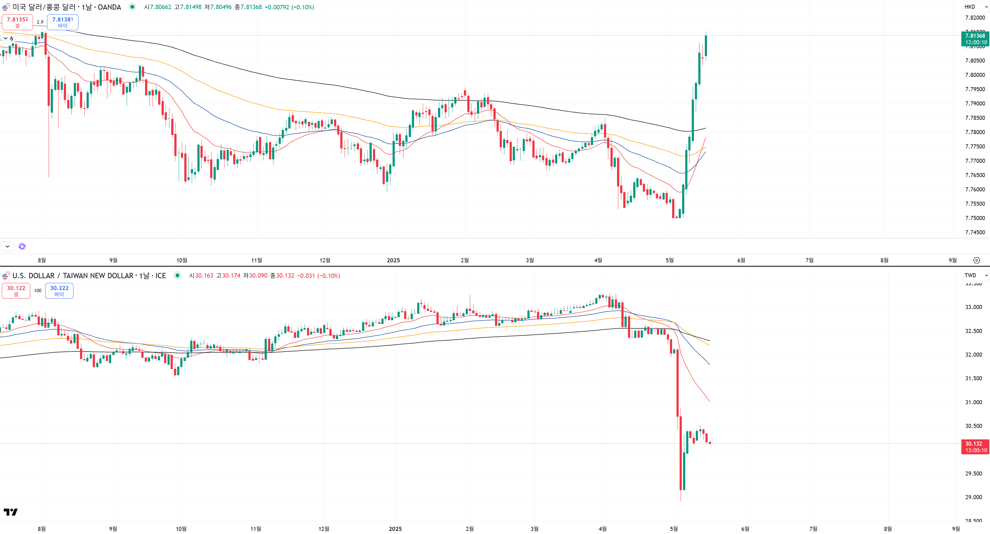 달라 기준으로 홍콩과 대만 환율을 봤더니....