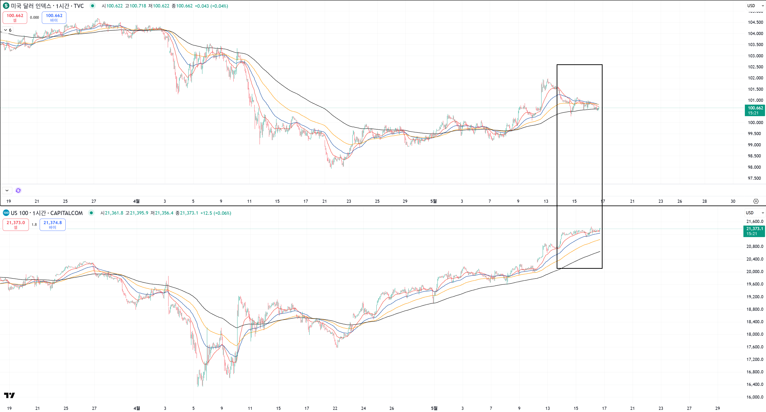위에는 달라 아래는 나스닥입니다.