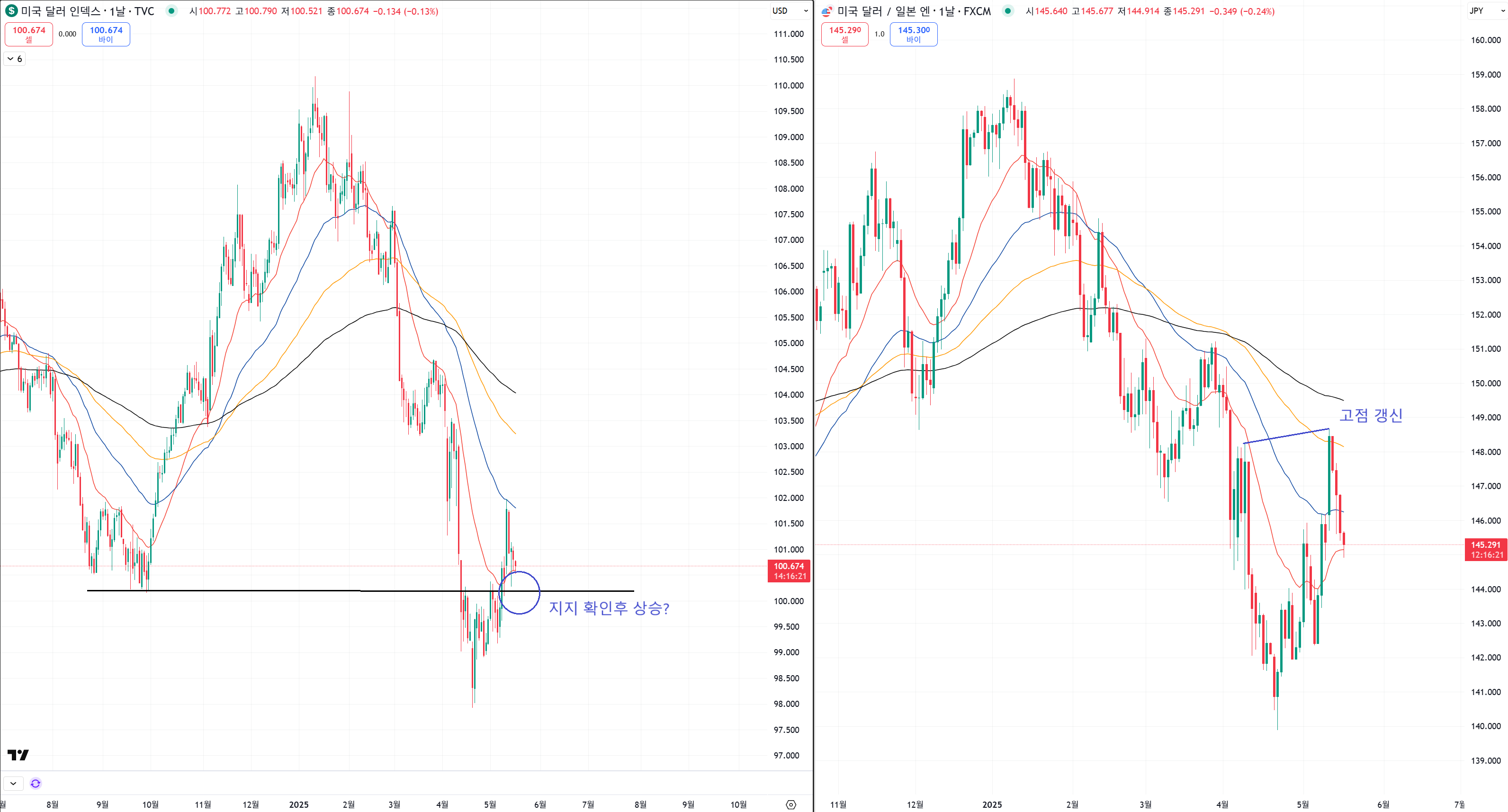 엔화는 고점갱신을 해주고 조정을 받았습니다.