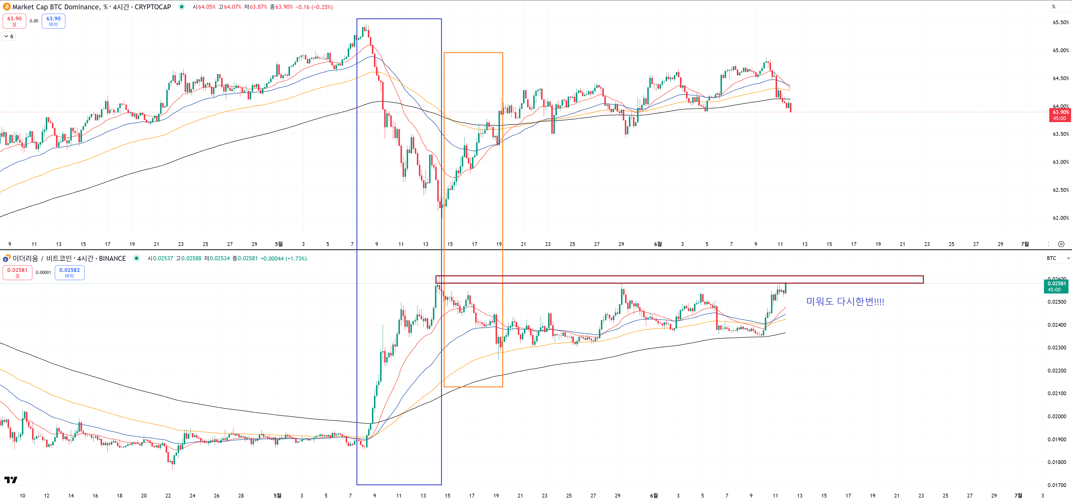 현재 도미넌스는 이더리움에게 절대적인 영향을 받고 있다는것도 확인했다면