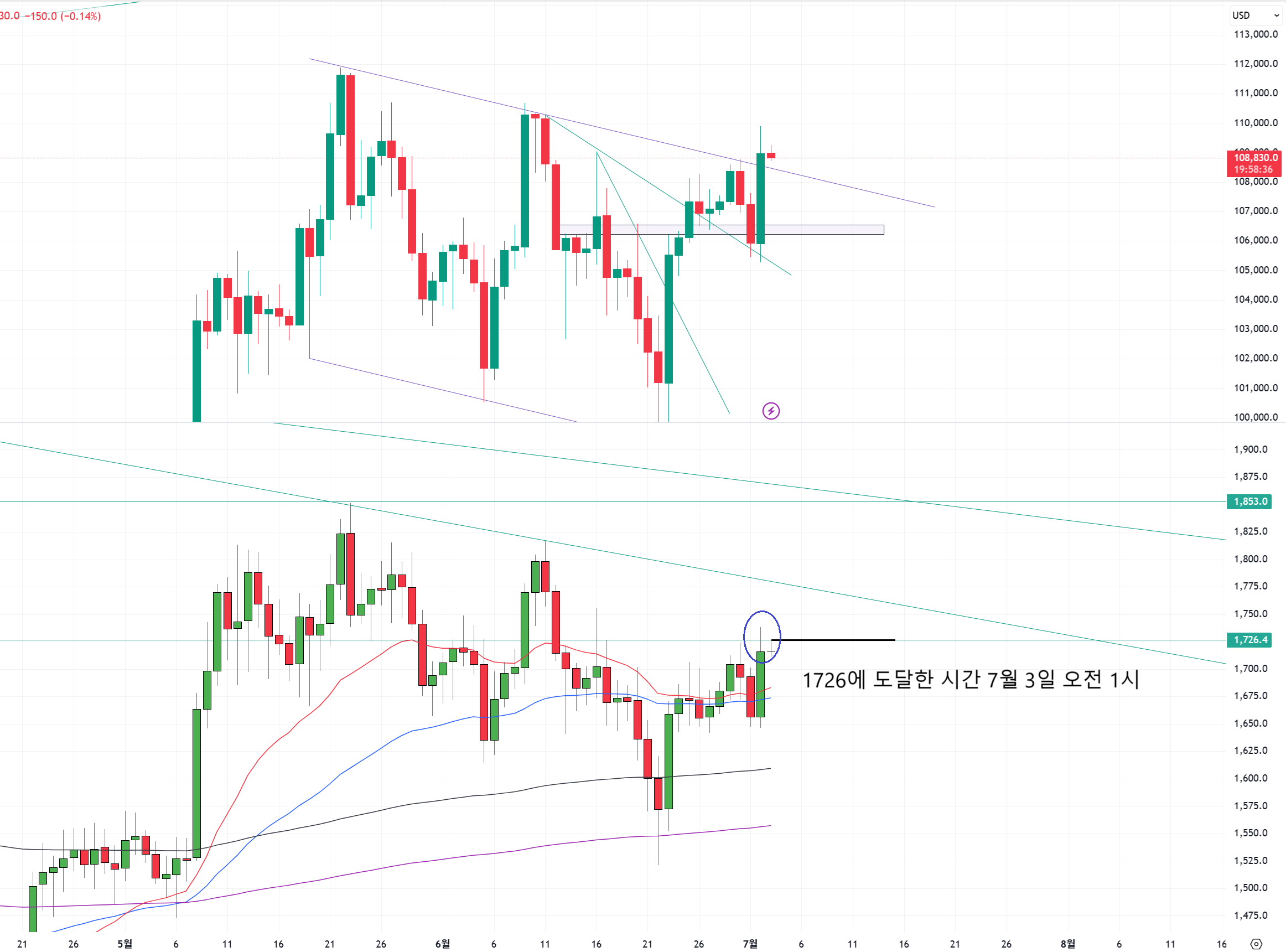 실제로 일봉기준 1726이라는 선에 도달하고나서는 상승세가 멈췄습니다.