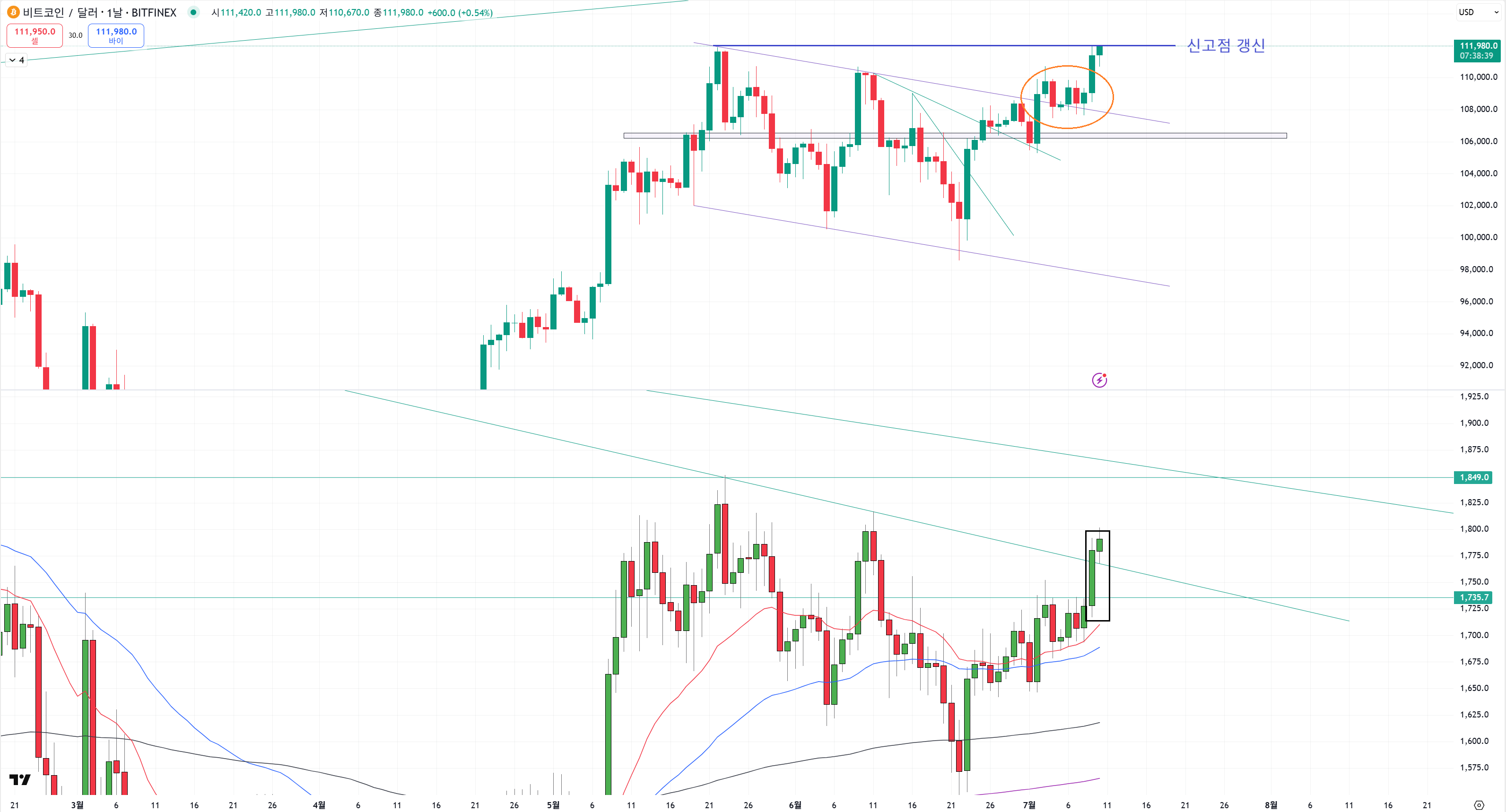 비트코인도 신고점 일봉 몸통 걸치기가 아니고