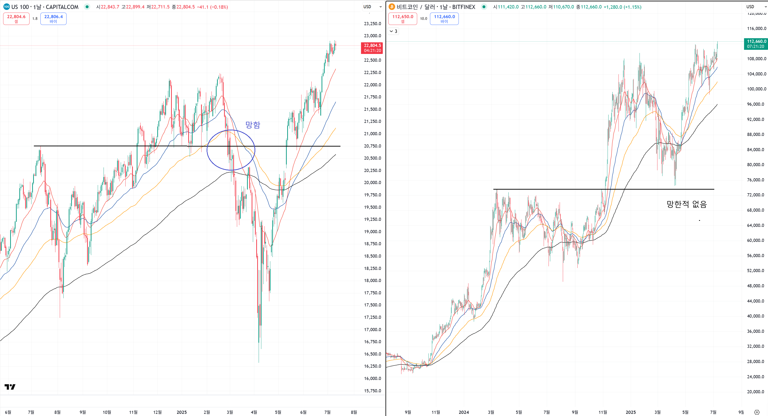 비트코인은 24년 11월에 그걸 해줬고 나스닥은 못해줬어요.