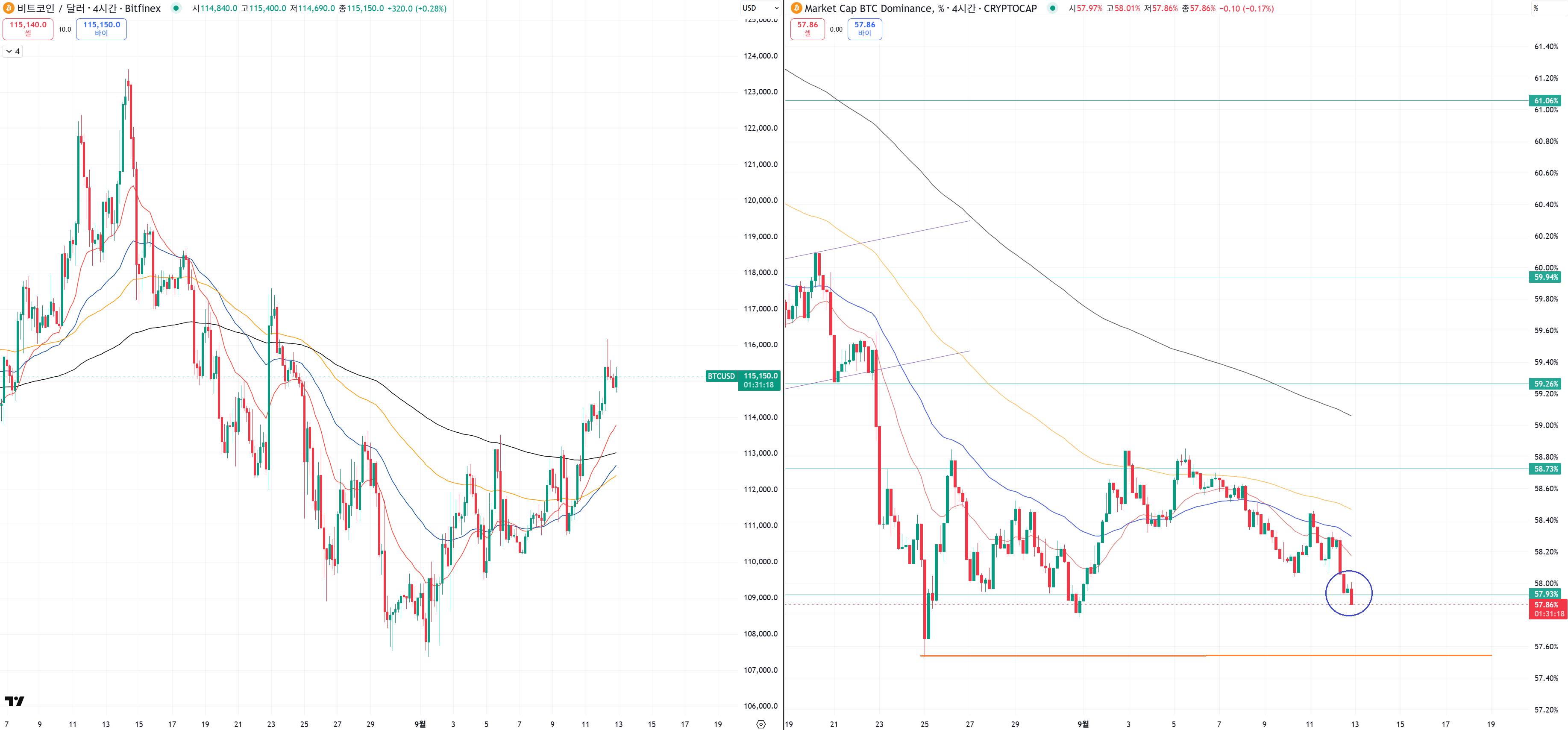 비트코인 추가 하락에서 도미넌스가 상승으로 넘어가는것만 아니면