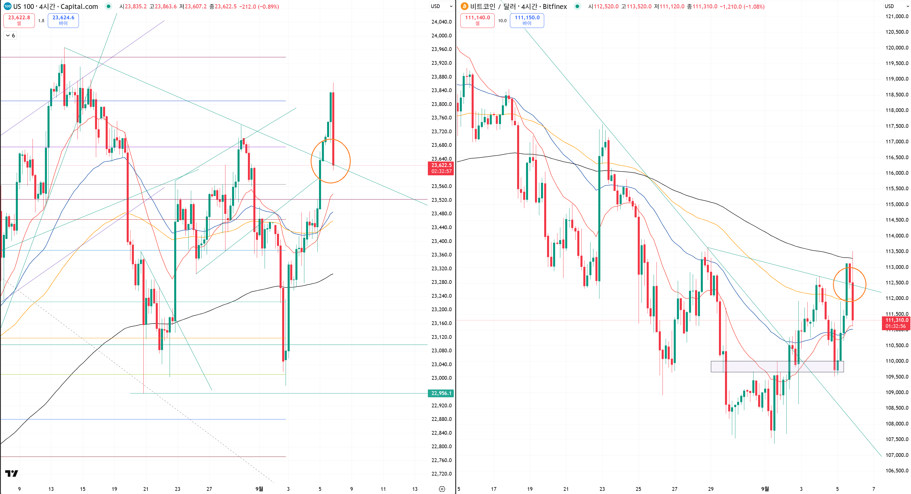 계속 나스닥과 비트코인 리듬을 강조하던 시기였었어요.