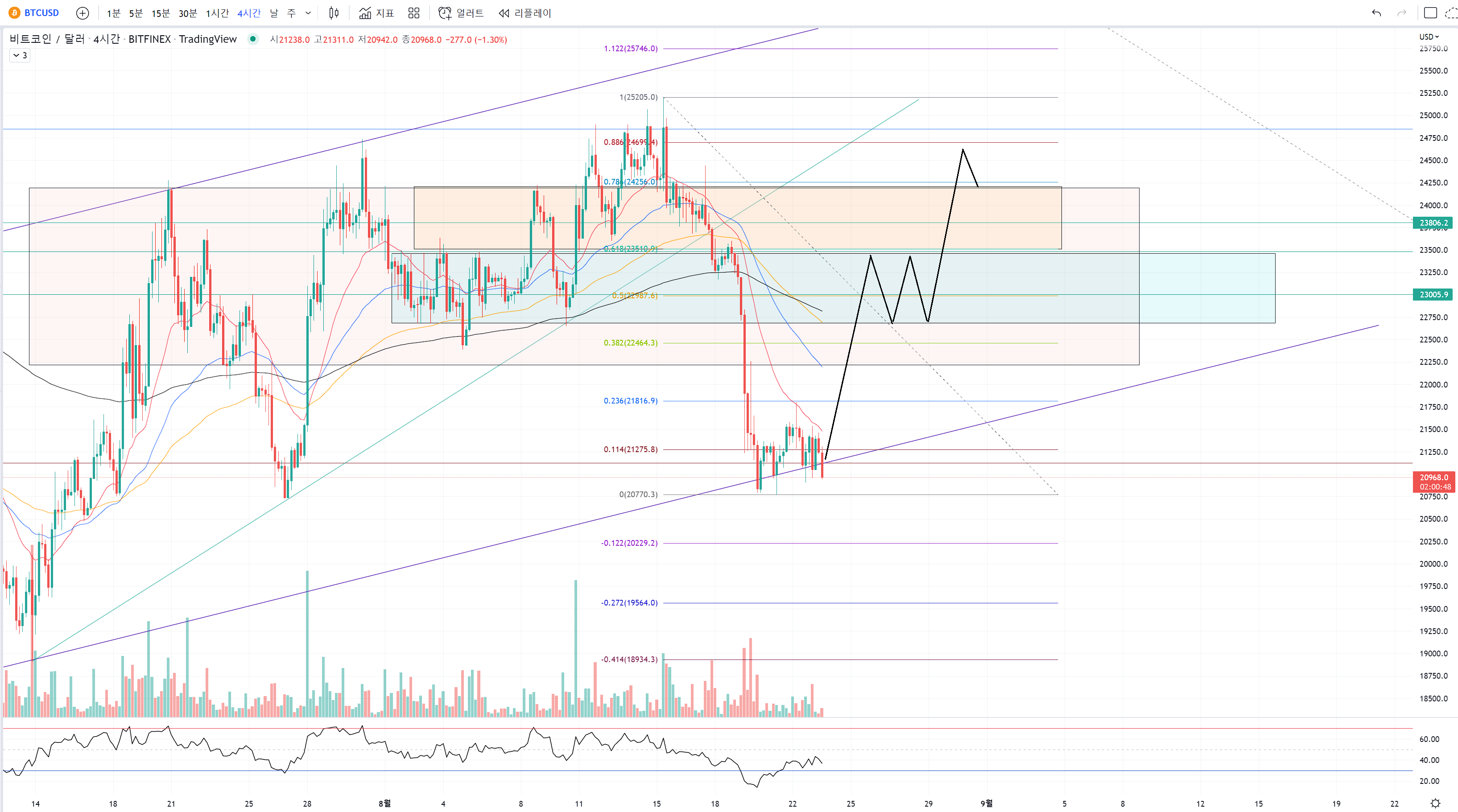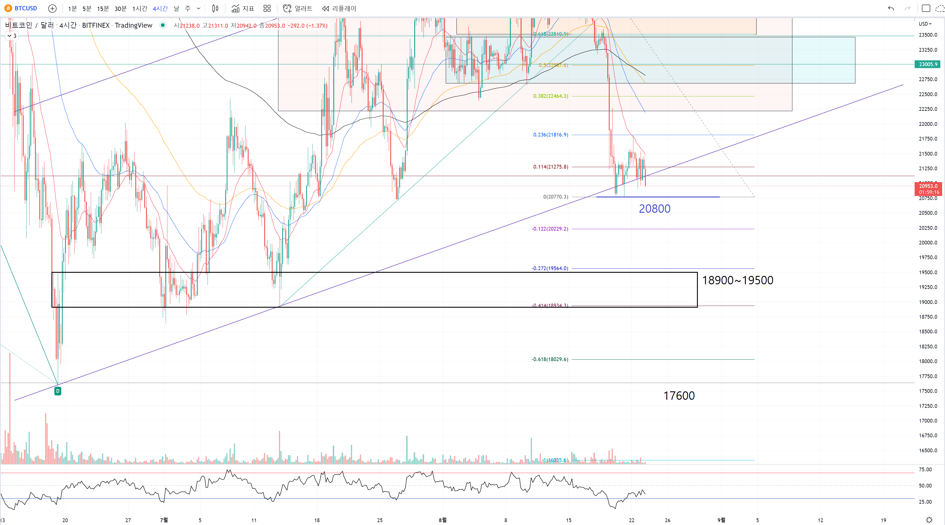 비트코인은 20800이 밀리면 17600까지 봐야 하는 상황입니다.