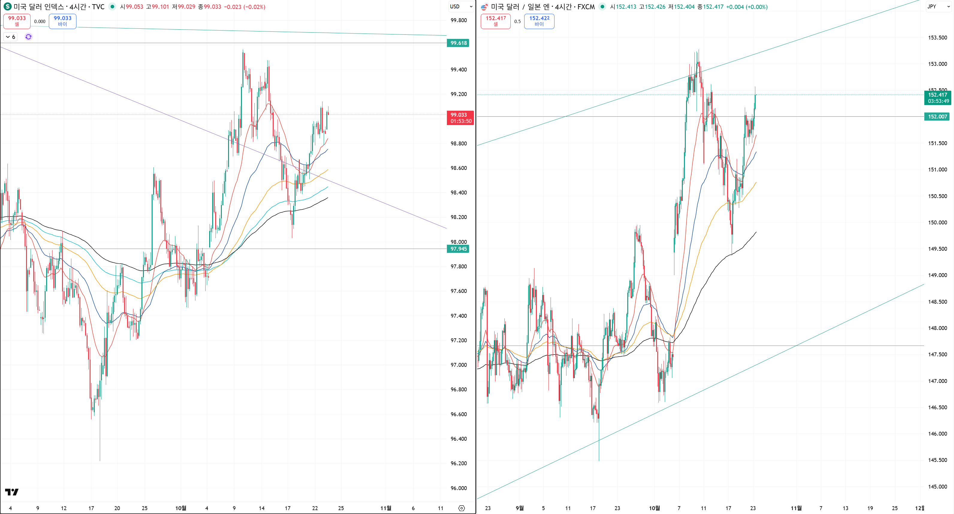 달라와 엔화도 투자하기 좋게 움직여줍니다.