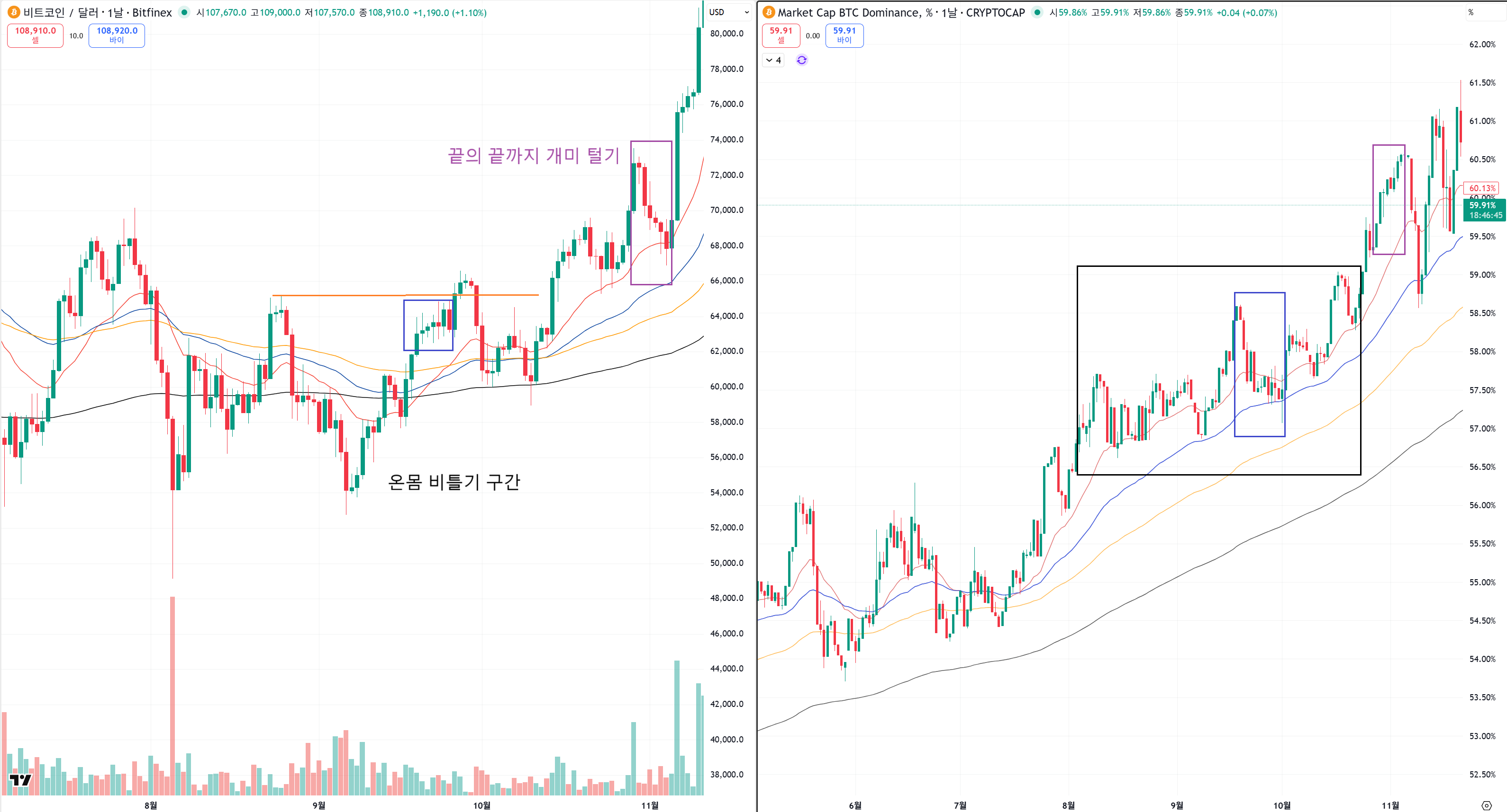 지금 비트코인에서 매수가 좋으려면 다른거 없습니다.