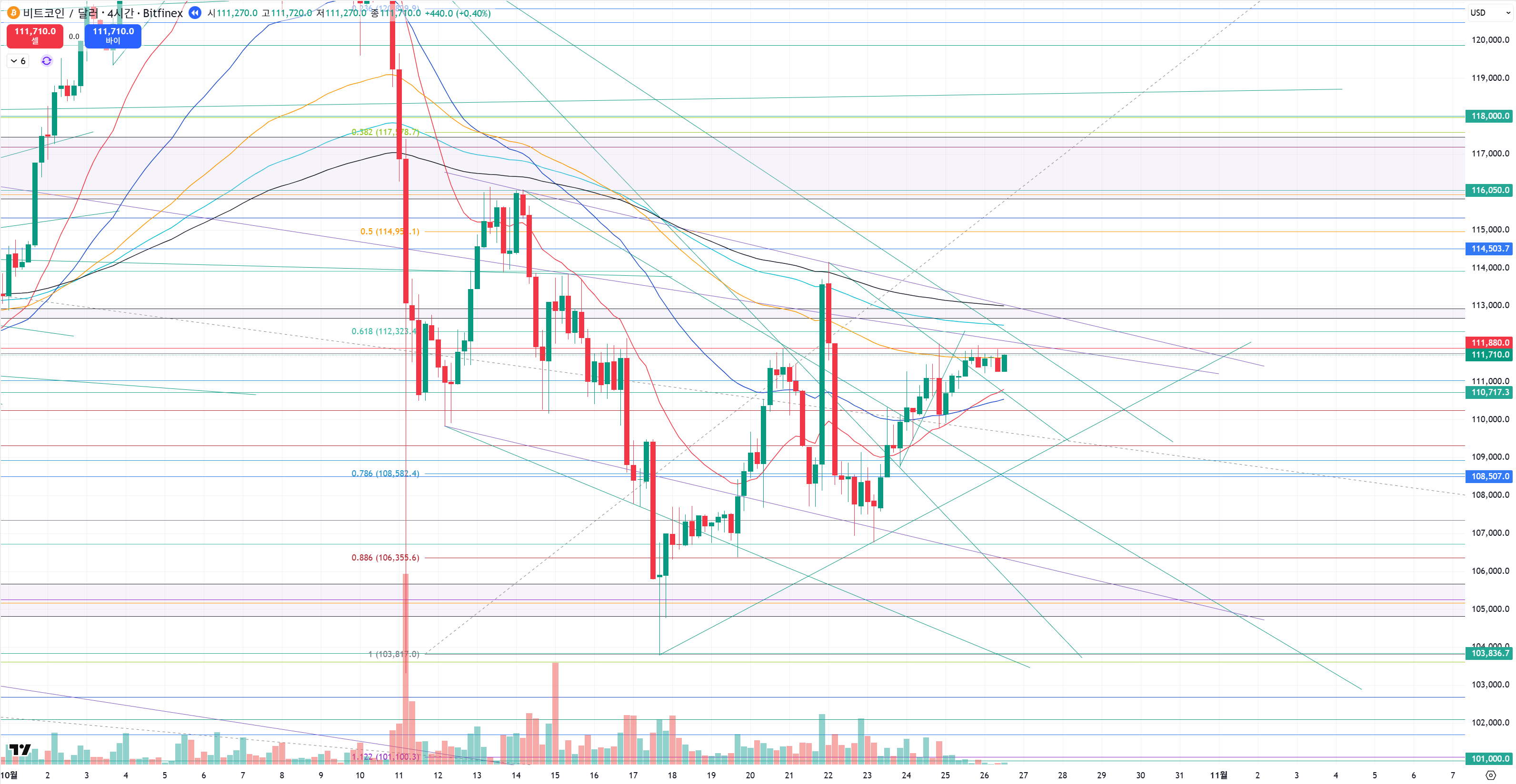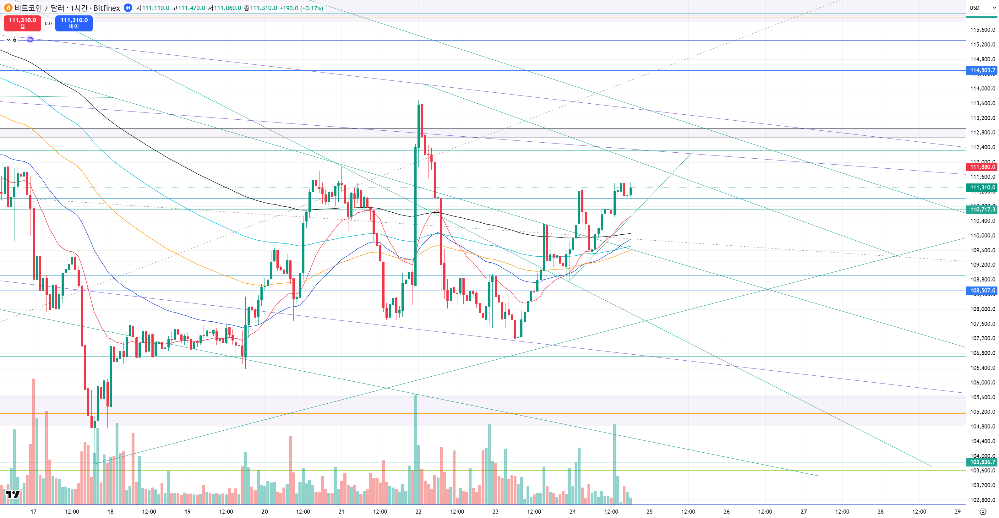 물론 야금야금 상승하던데 111800 숏 진입 자리에서는 딱 멈춰서 주말 내내 횡보 하고 있었고